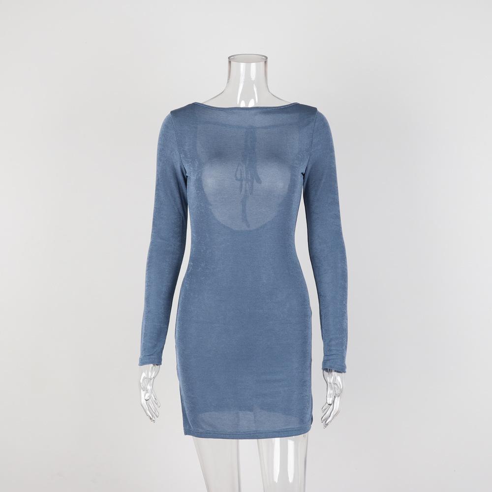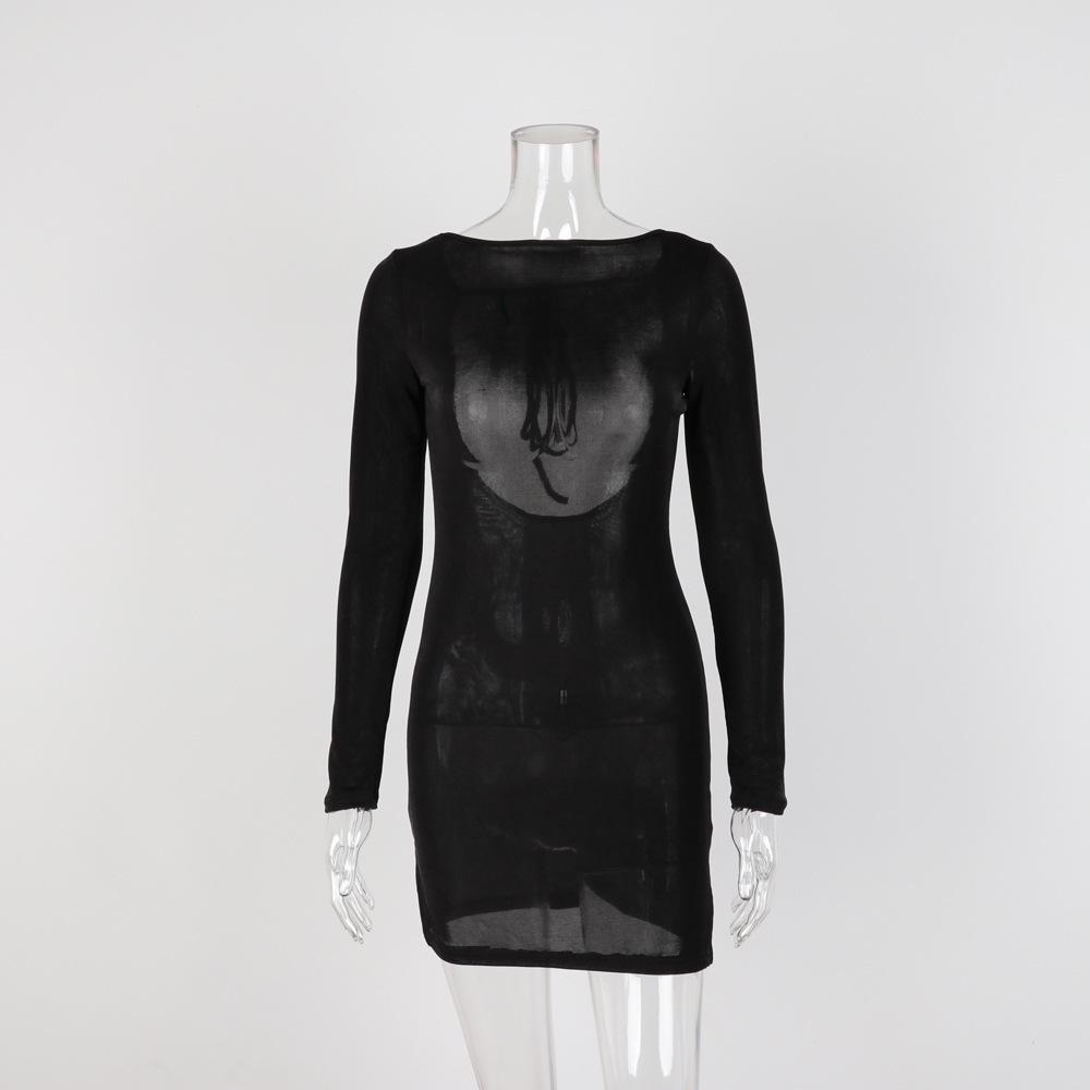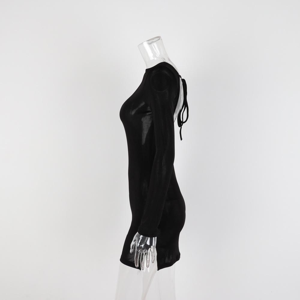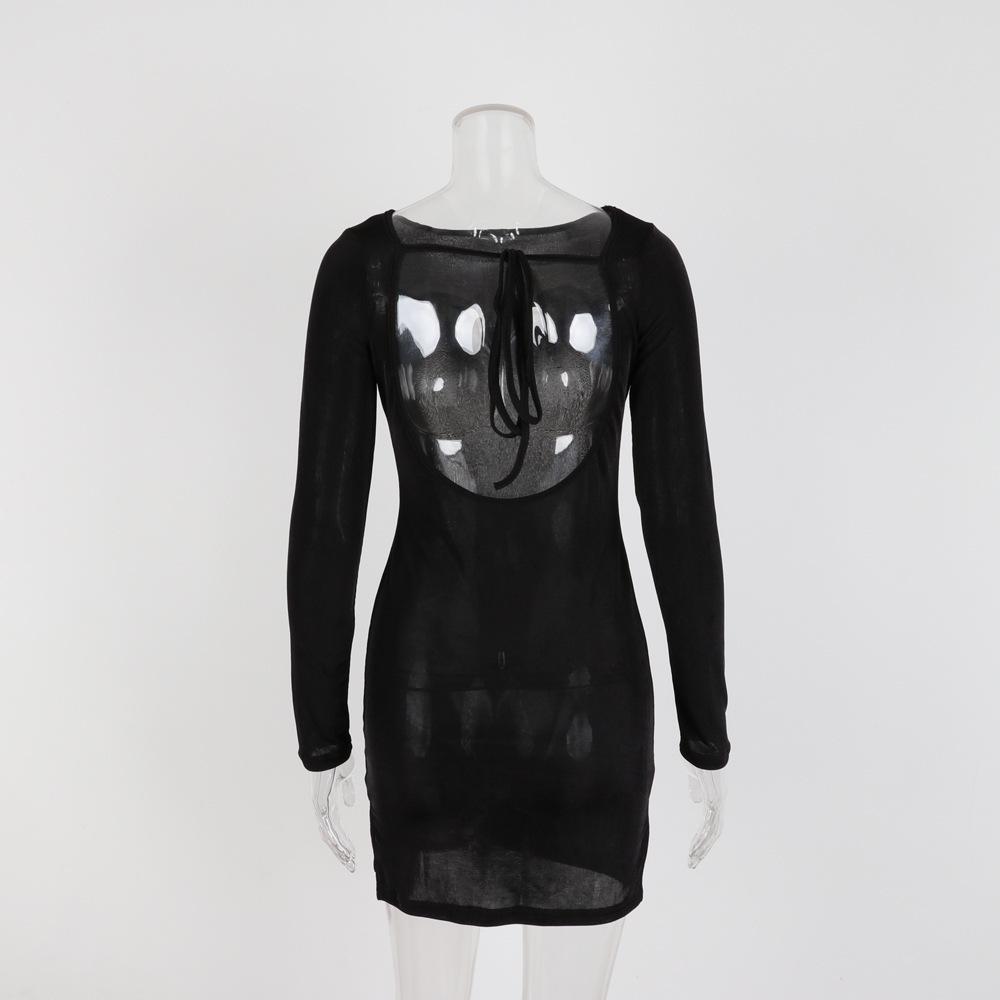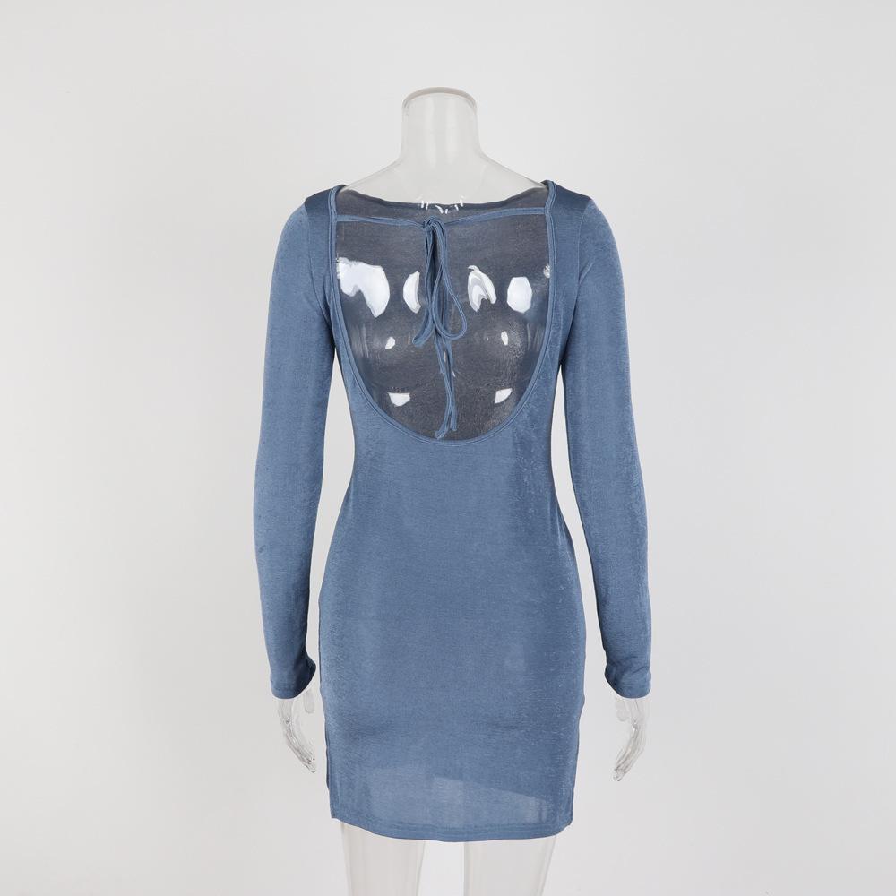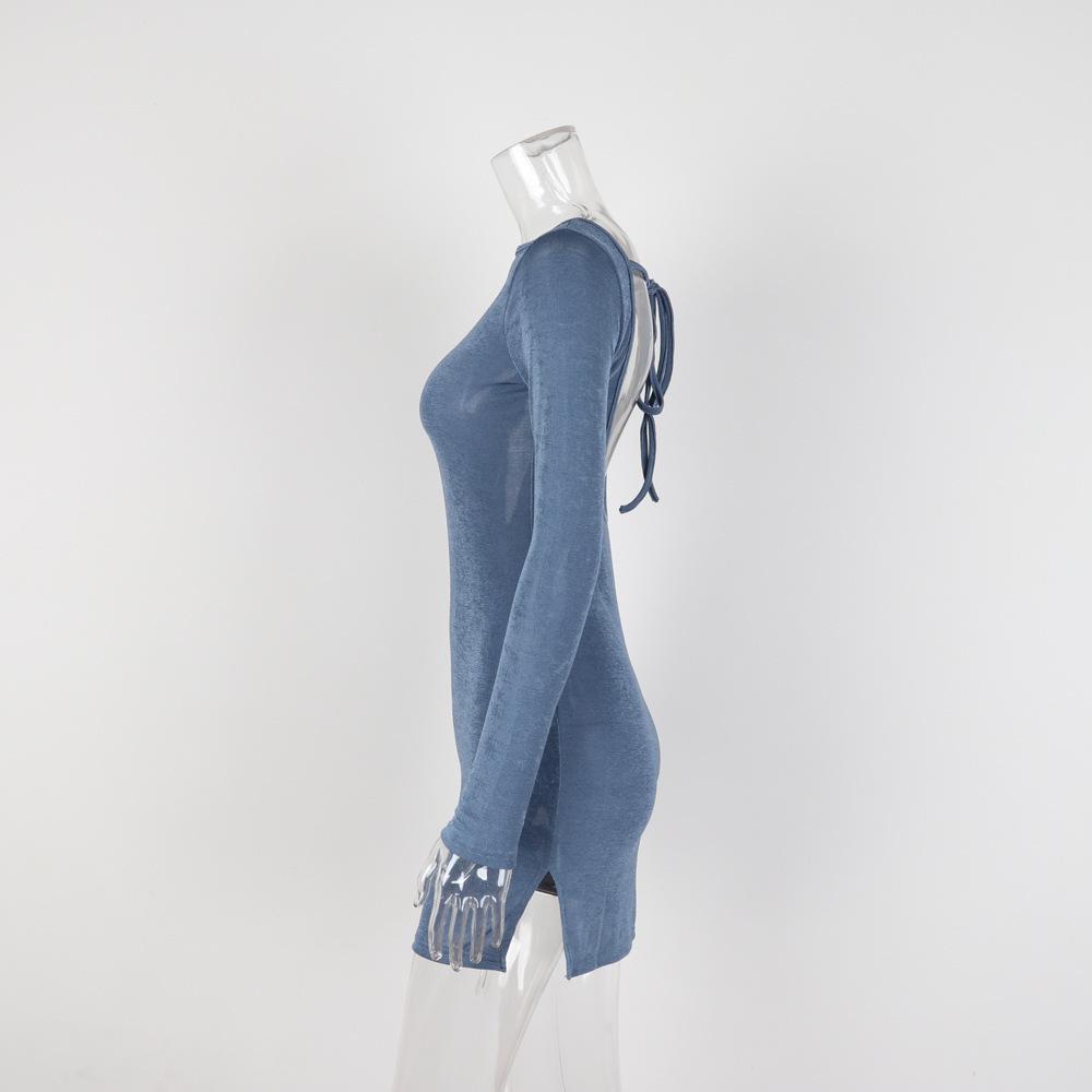 LYQ24001 Vestido de otoño nuevo para mujer, sexy, sin espalda, perspectiva, ahuecado, dividido, con cordones, manga larga