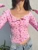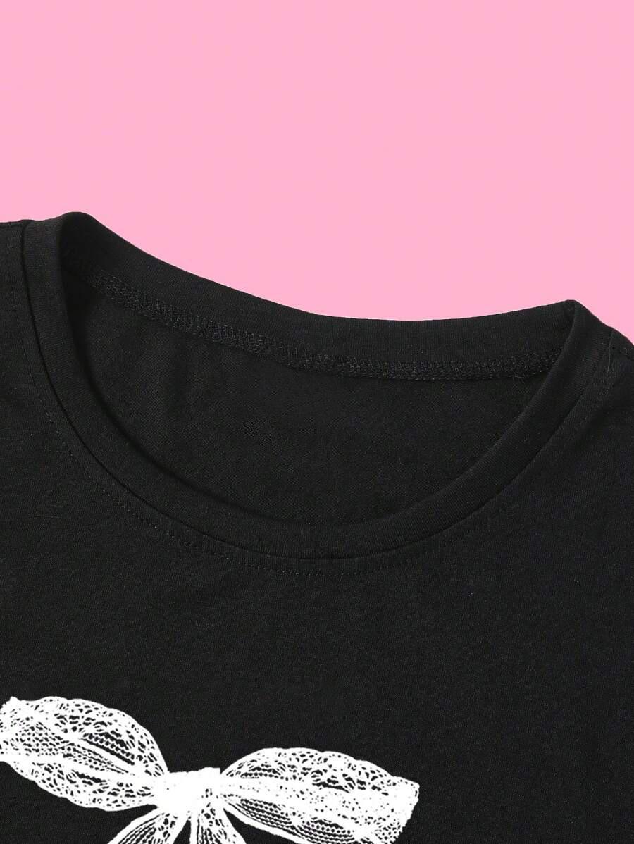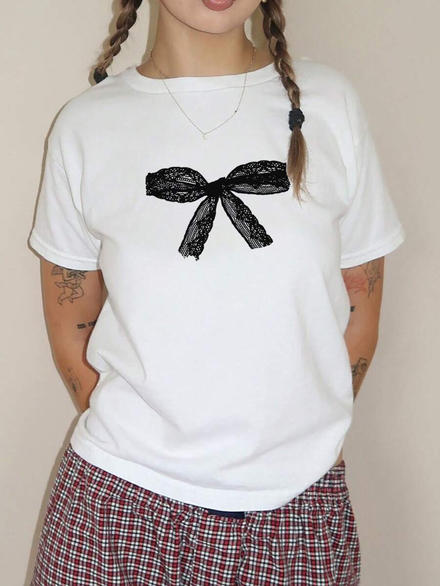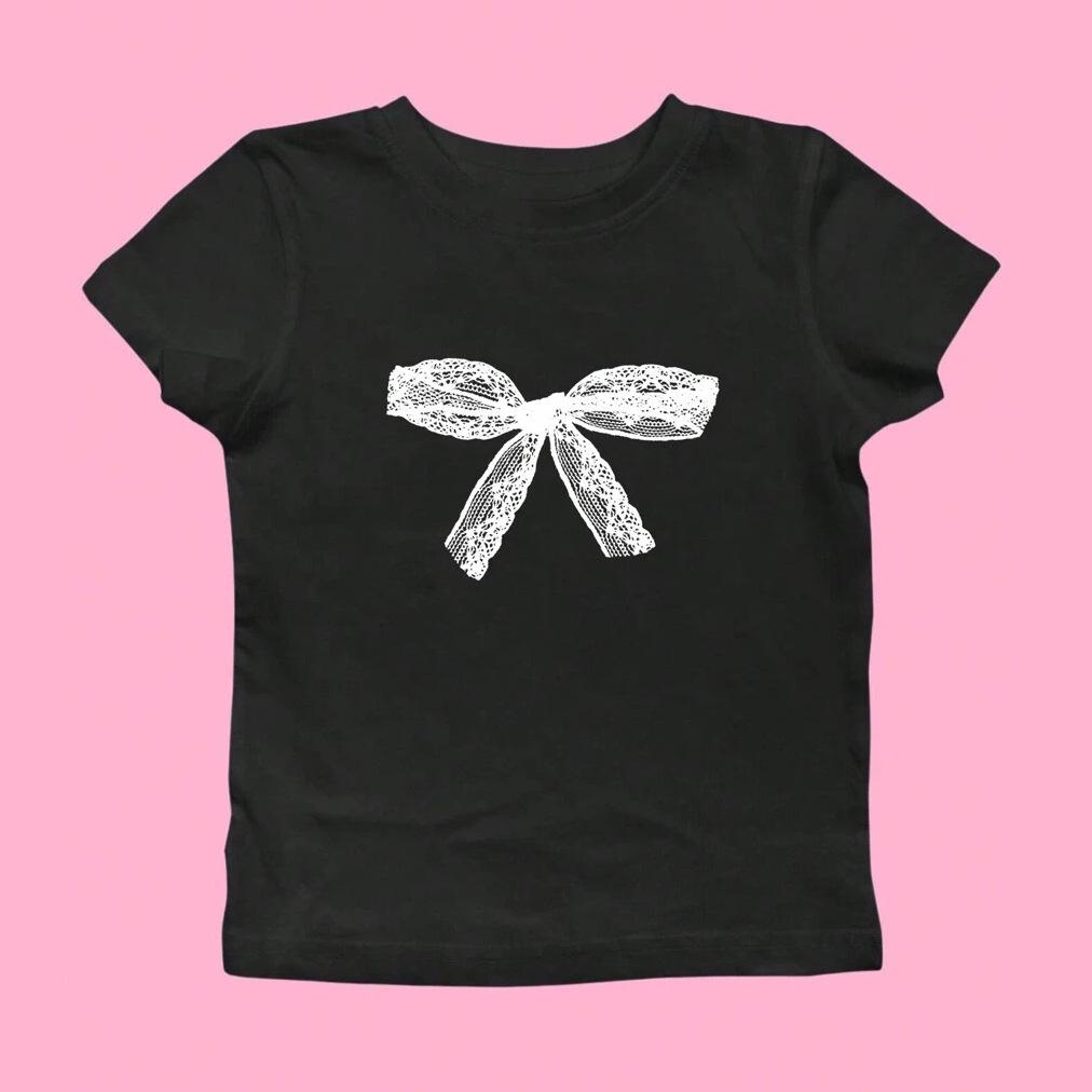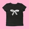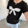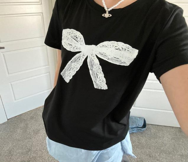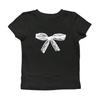 2024 Estilo europeo y americano transfronterizo nuevo lazo para mujer ajustado ombligo ajustado moda manga corta camiseta top