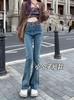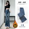 Jeans Acampanados para Mujer, Otoño Delgados Negros Cintura Alta Ajustados Modernos Estilo Coreano Elásticos Bootcut Pantalones Largos hasta el Piso