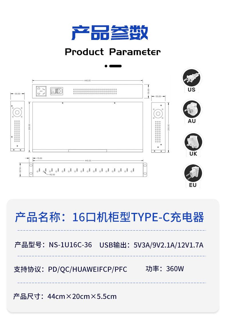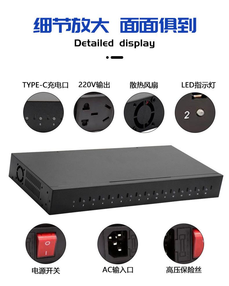 Cargador de 16 puertos tipo gabinete de venta caliente transfronterizo, interfaz tipo C, salida independiente, cargador de carga rápida multipuerto