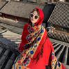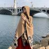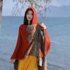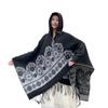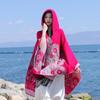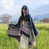 Capa con capucha estilo étnico de vacaciones, chal, ropa de viaje para mujer, foto, capa de flores rojas, prenda exterior cálida y gruesa