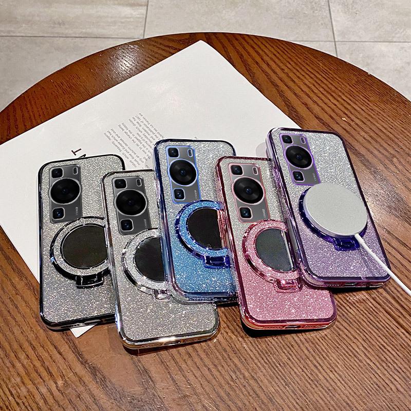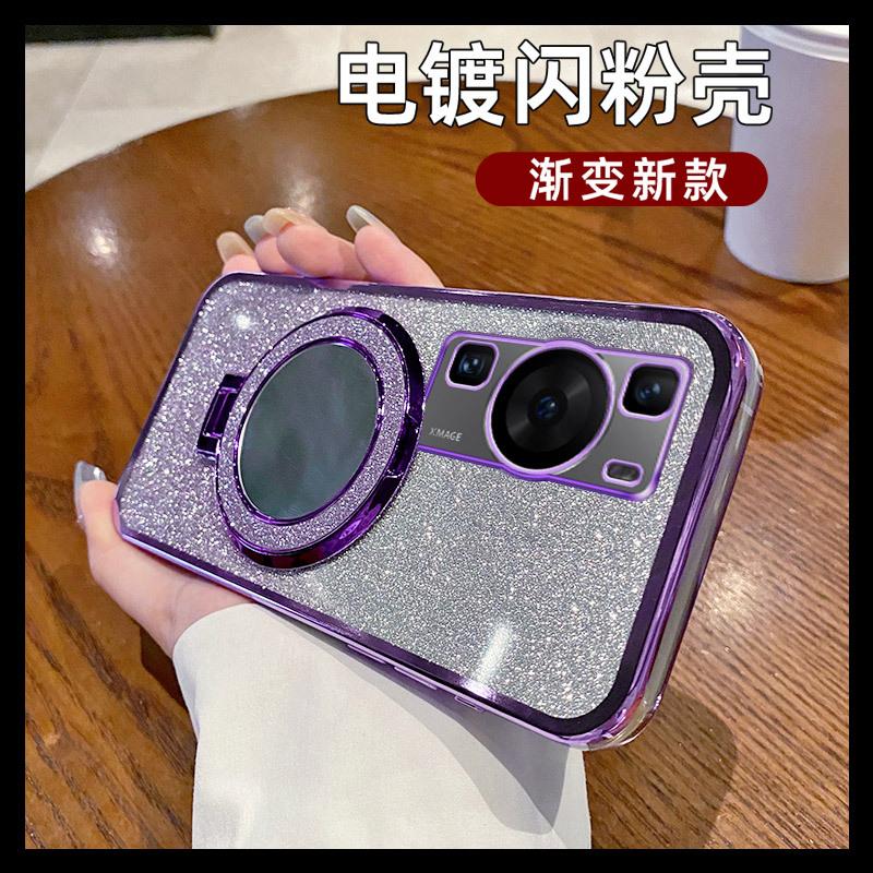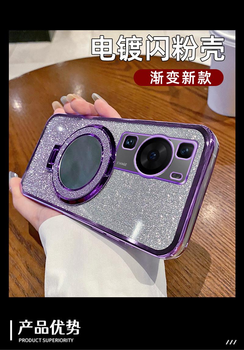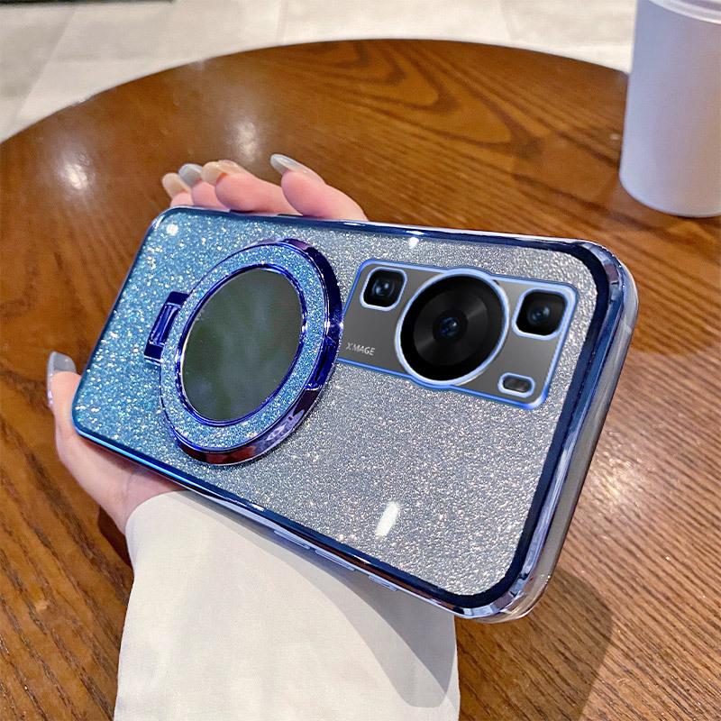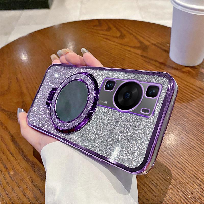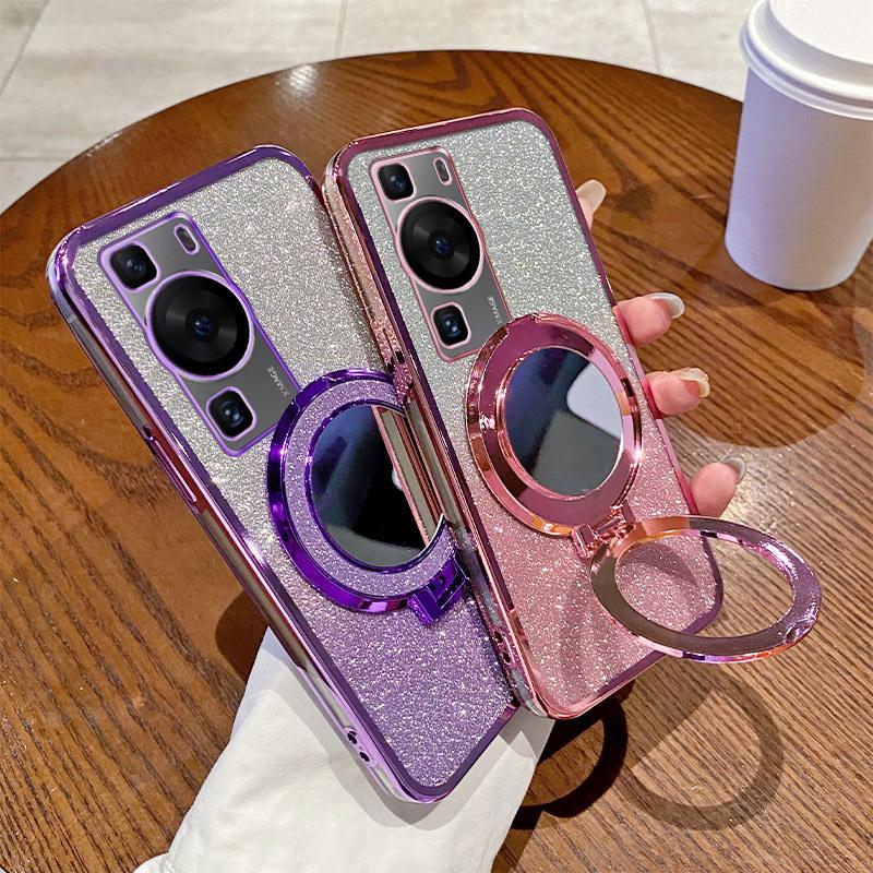 Funda con purpurina galvanizada para Huawei Pura70Pro, soporte de espejo para P60Pro, funda protectora a prueba de caídas para P50