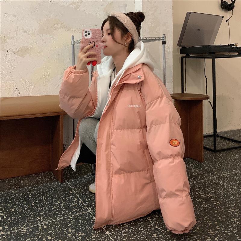 Ropa Exterior de Algodón para Mujer Estilo Coreano Corta Tipo Pan Ropa Exterior Talla Pequeña Grande Estilo Hong Kong Suelta Algodón Plumón Ropa Exterior Estudiante Gorda mm
