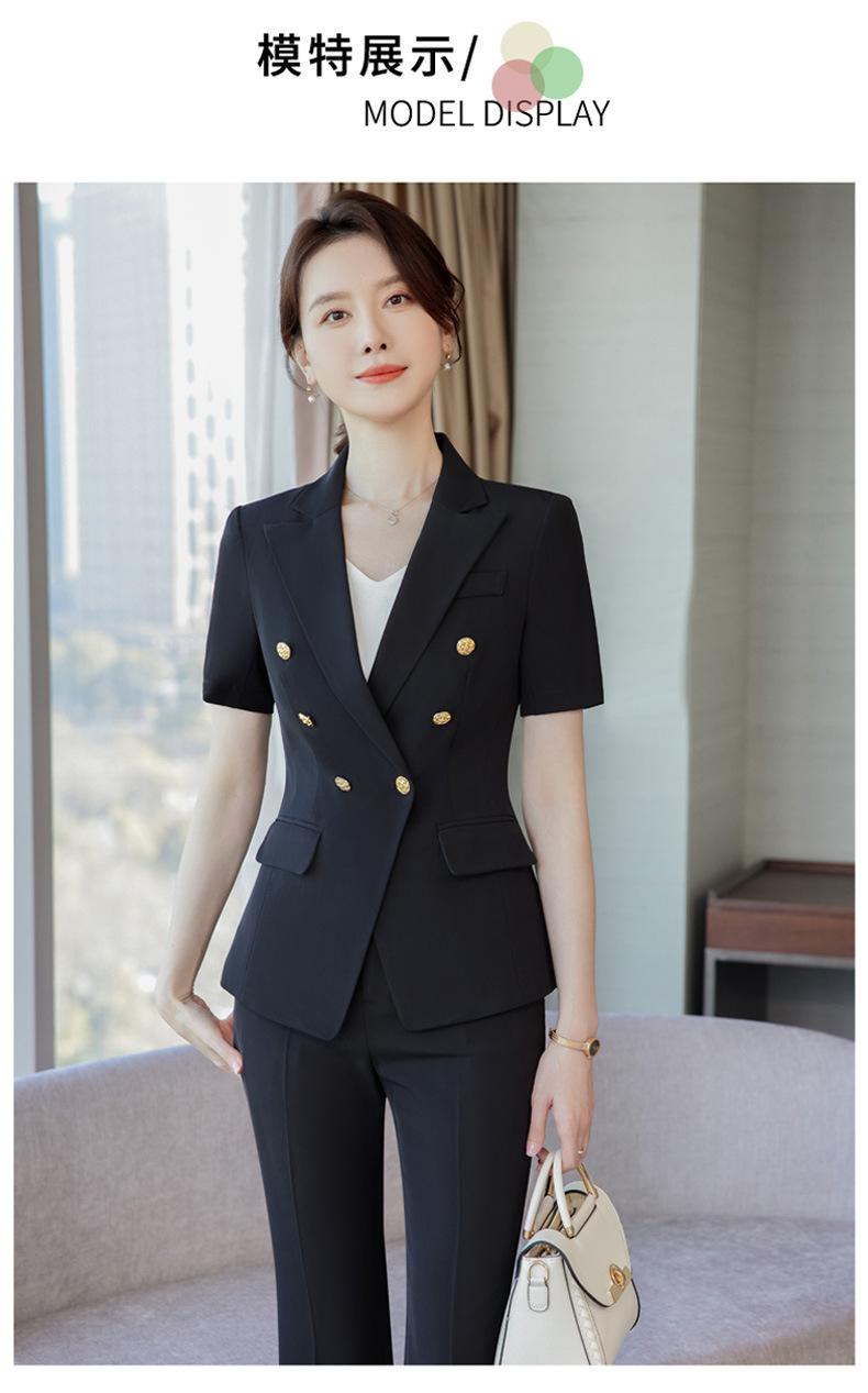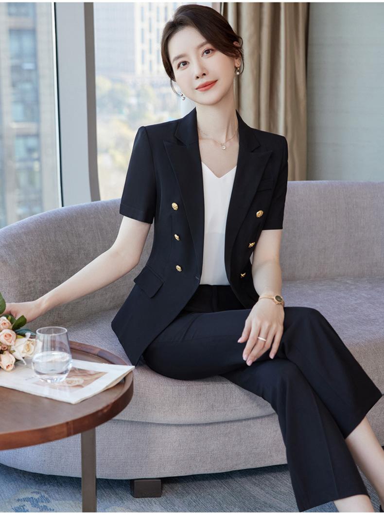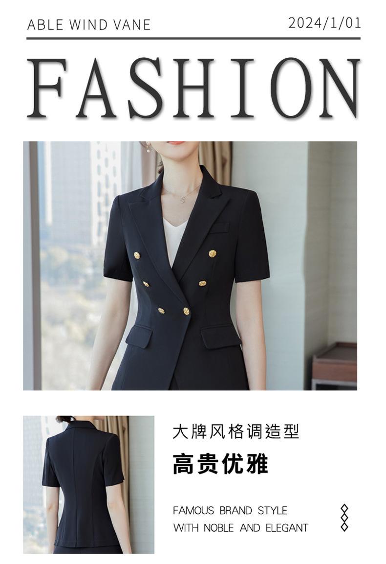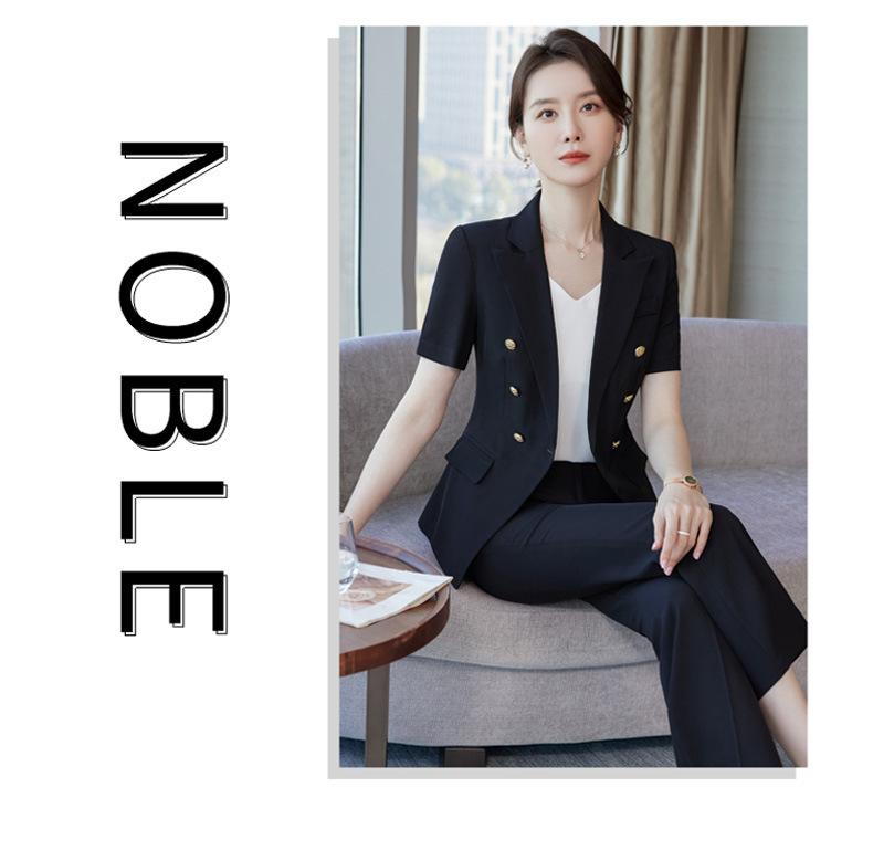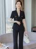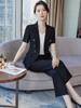 Traje de alta gama de doble botonadura y manga corta, traje profesional, traje de mujer para verano, temperamento, diosa, estilo fan, presentador de radiodifusión, mono