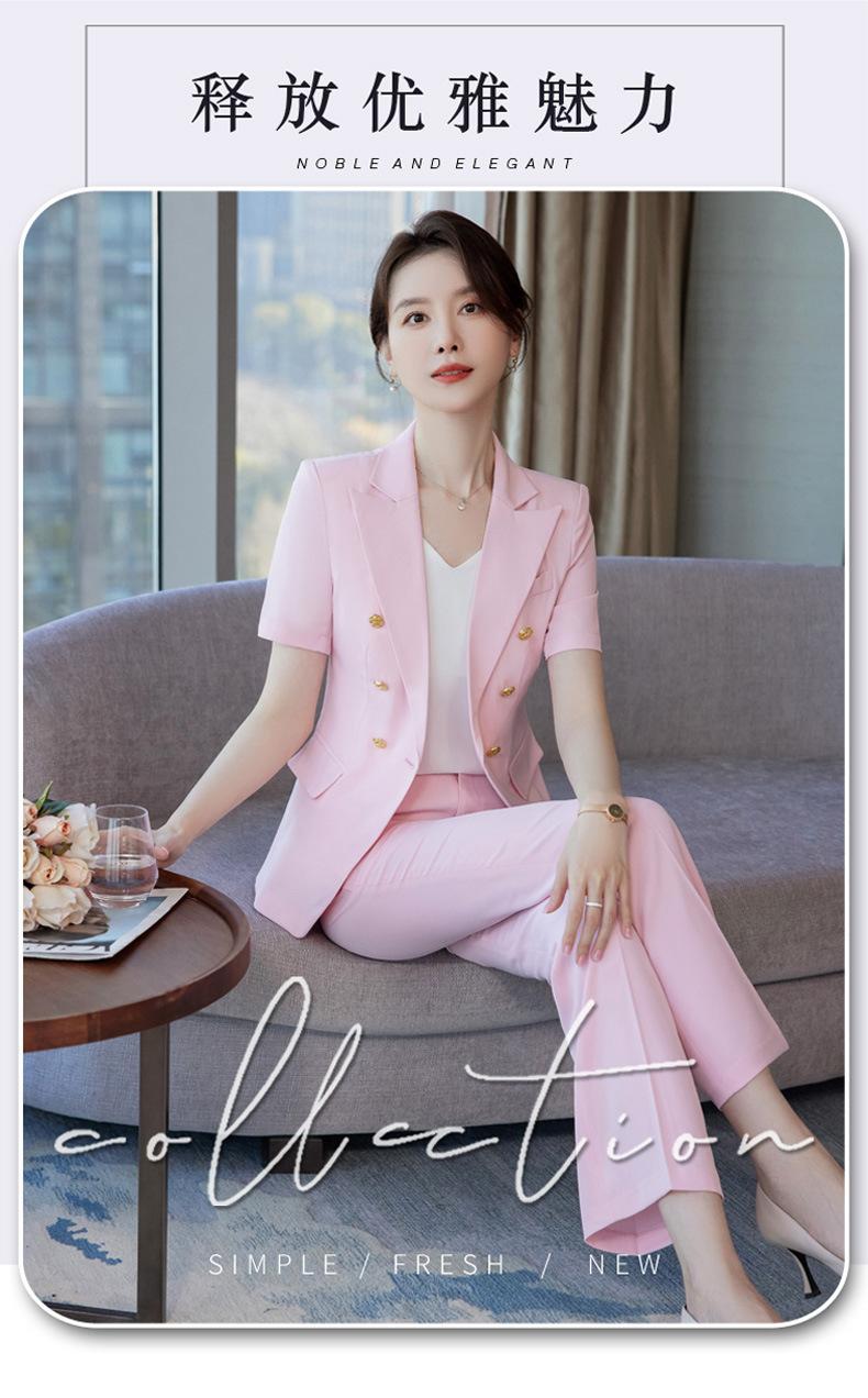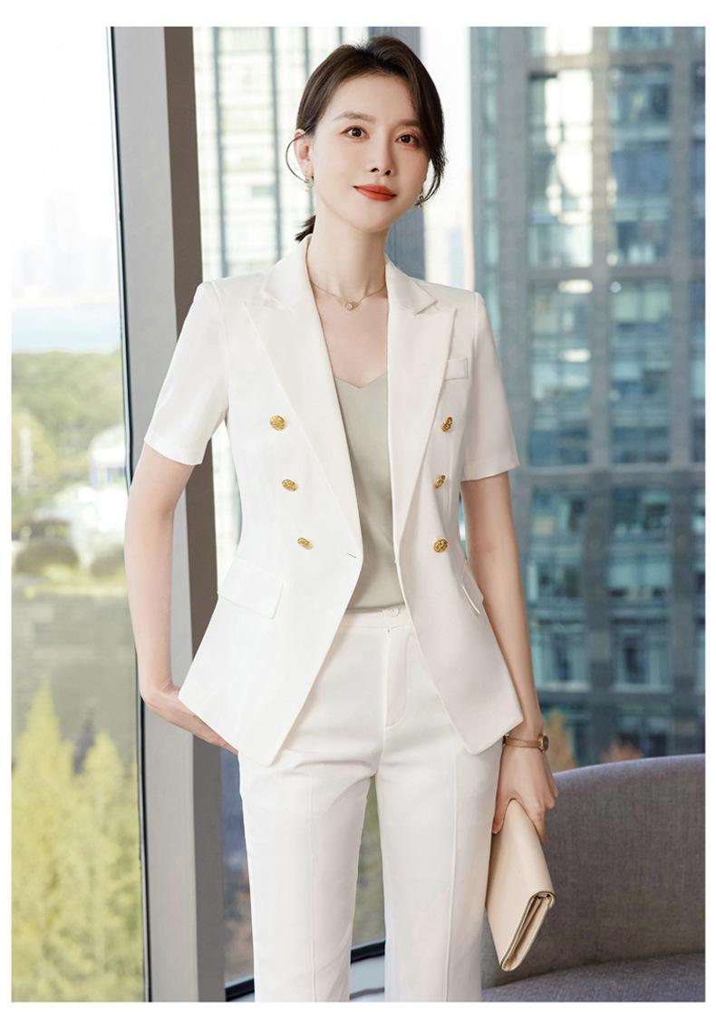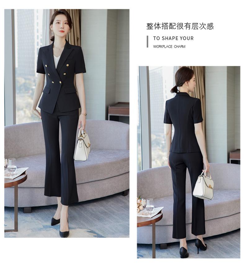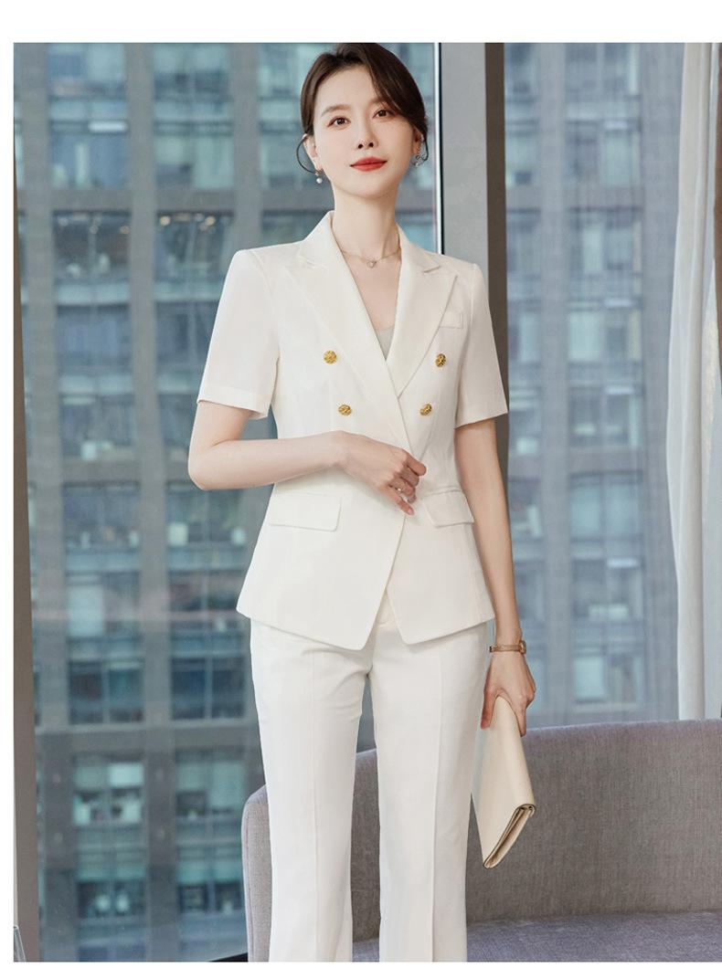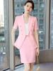 Traje de alta gama de doble botonadura y manga corta, traje profesional, traje de mujer para verano, temperamento, diosa, estilo fan, presentador de radiodifusión, mono