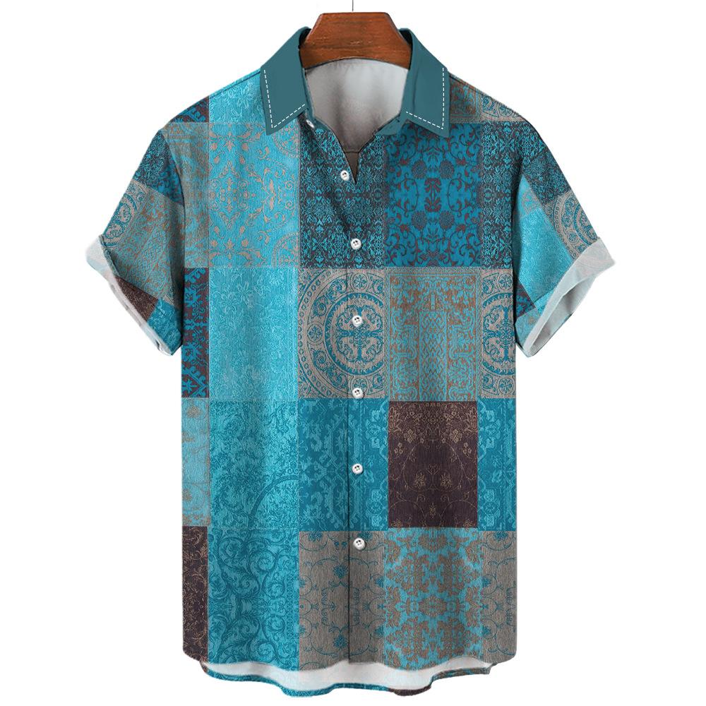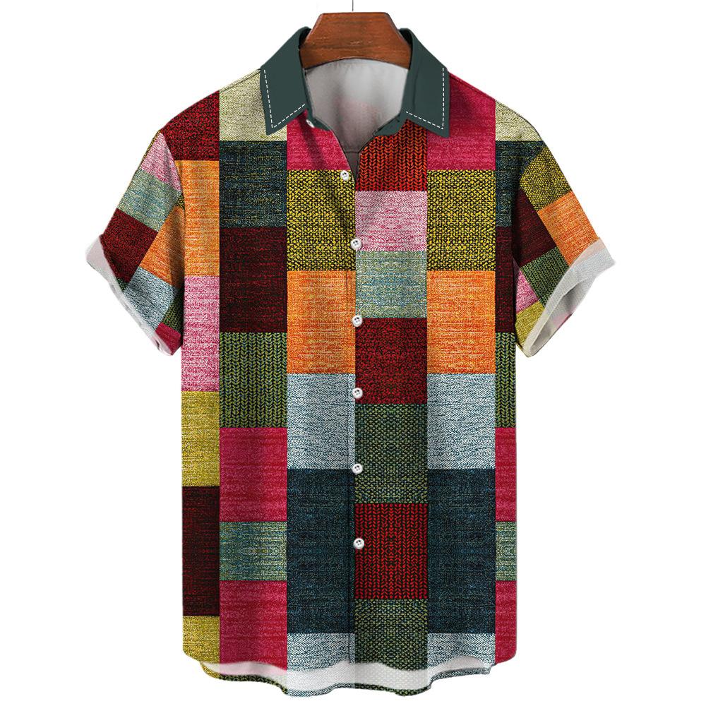Camisa informal de manga corta de verano con estampado 3D de Amazon, con solapa y colores a juego, para hombre, de estación independiente europea y americana