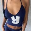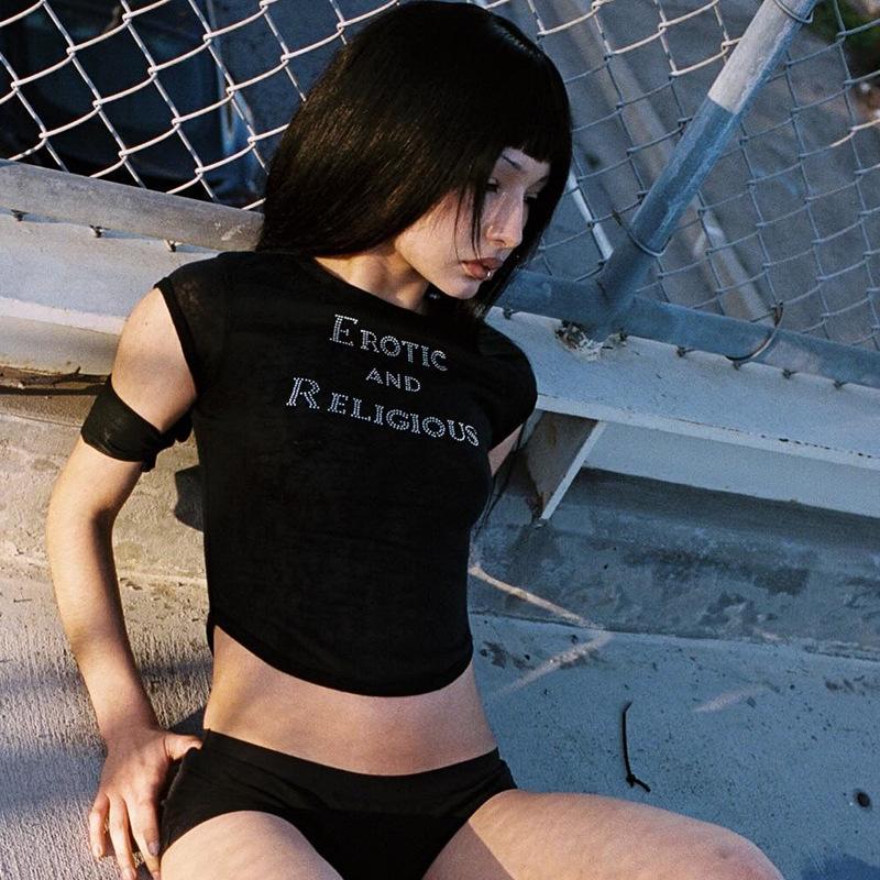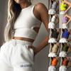 2024 nueva camiseta corta de mujer con dobladillo curvo y ombligo ajustado con letras de estilo europeo y americano de verano y otoño transfronterizo