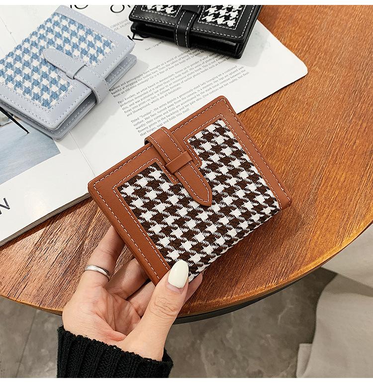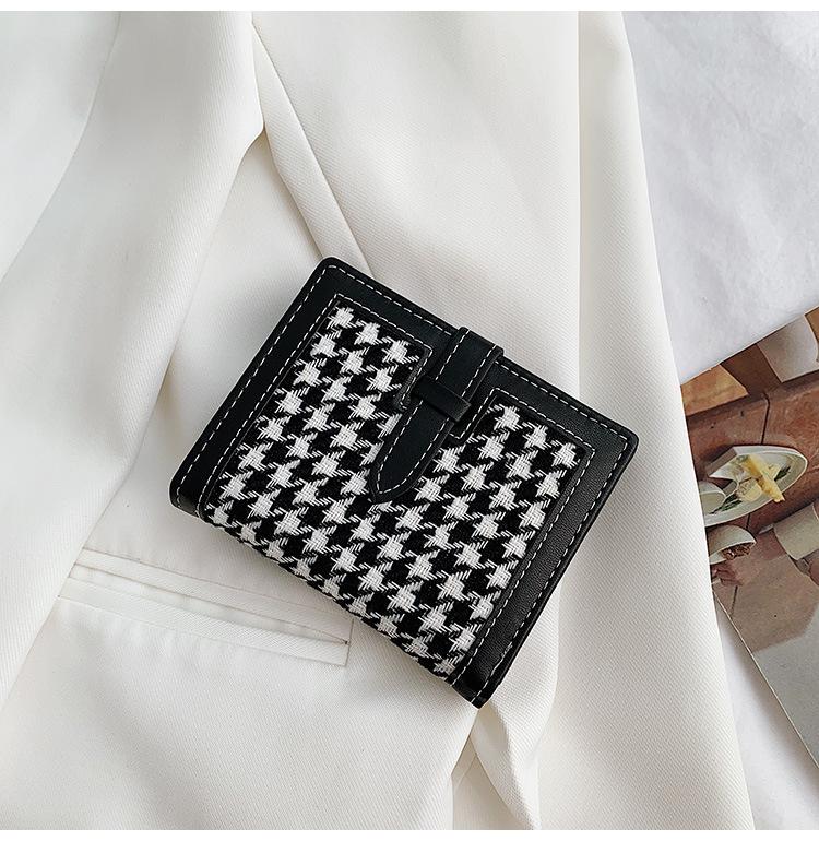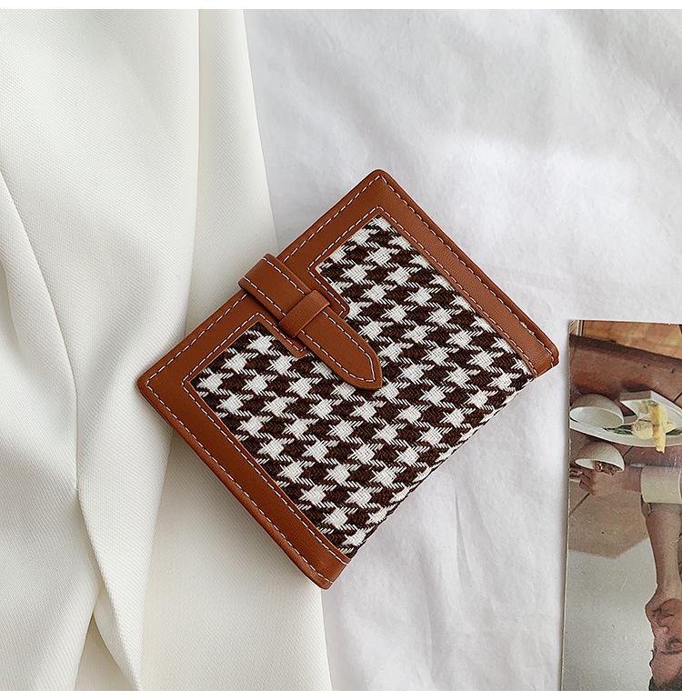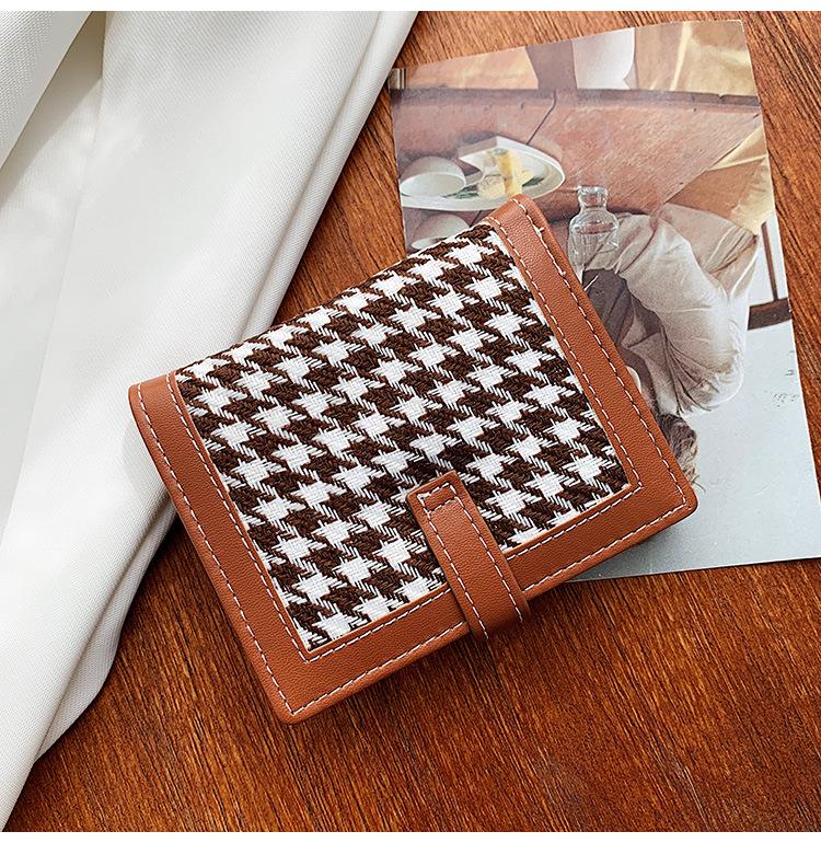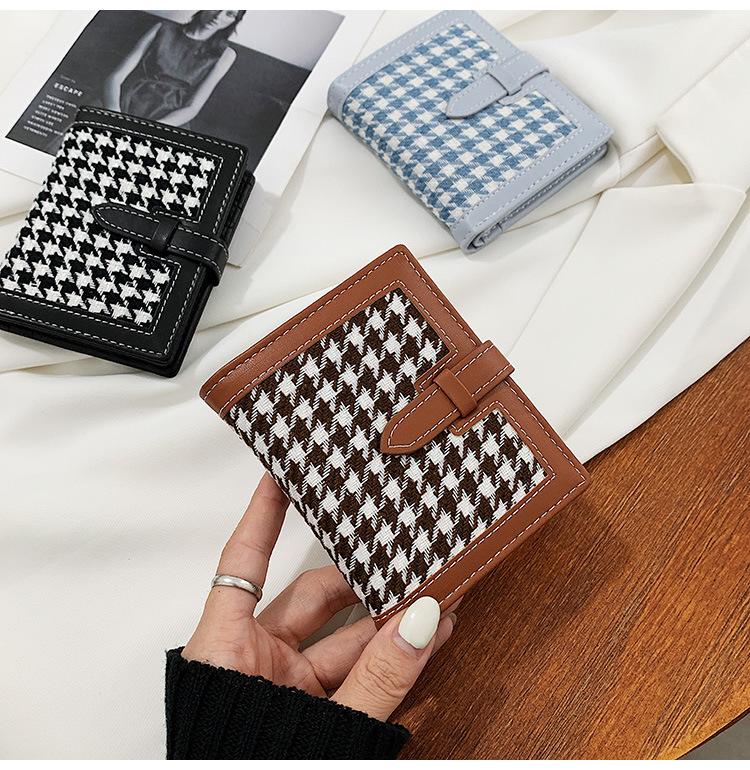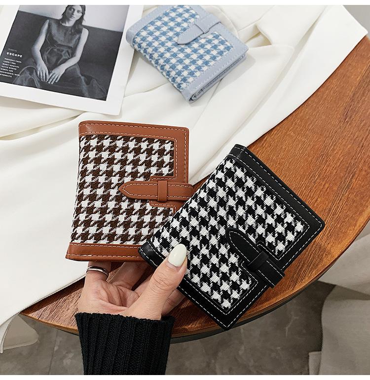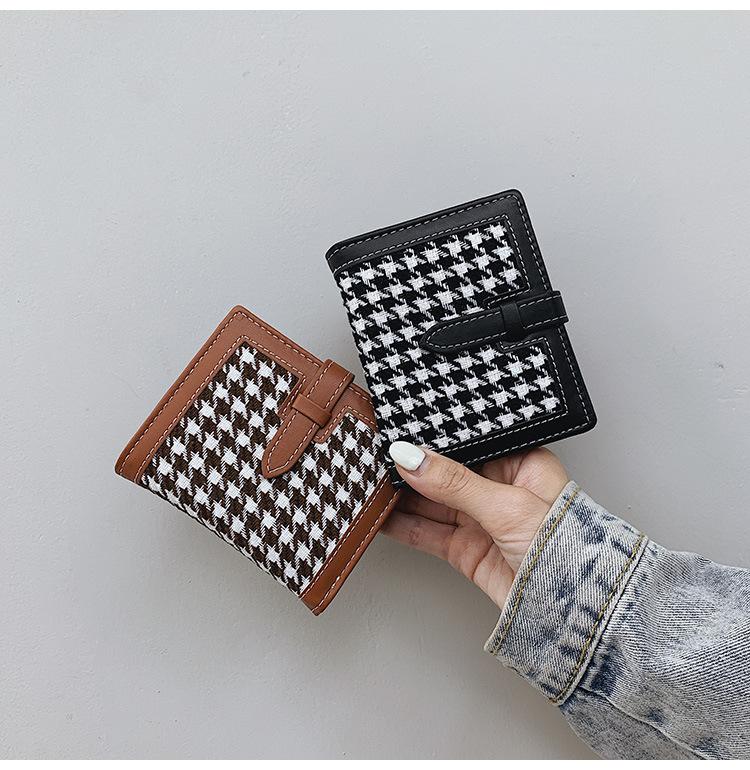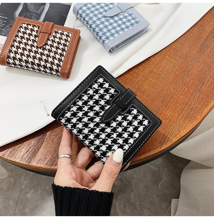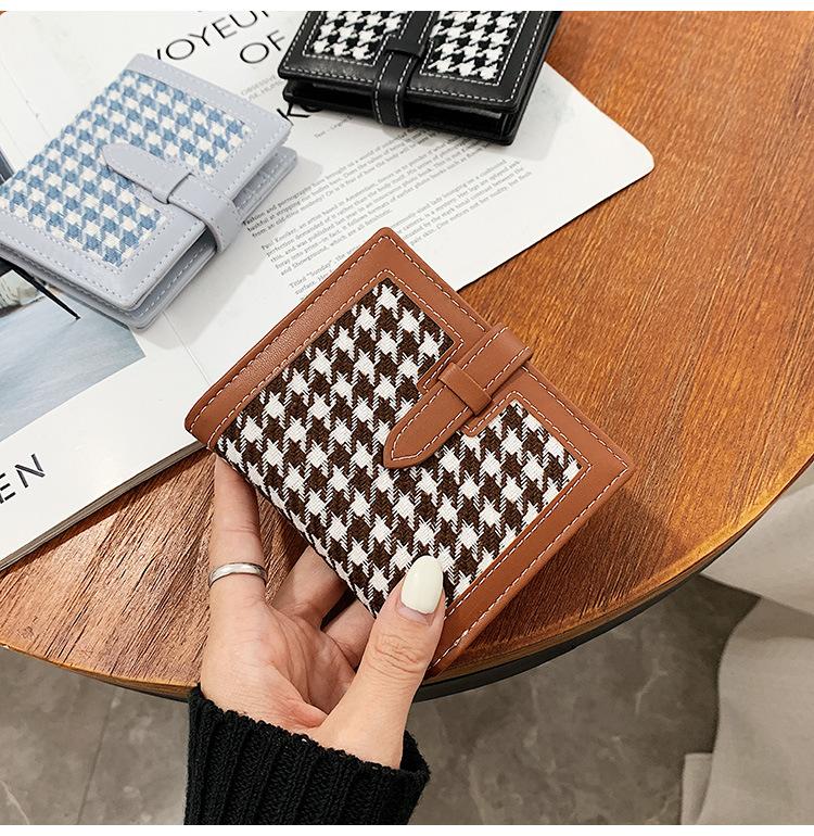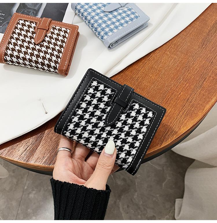 Cartera corta de lana con diseño de pata de gallo, 20% de descuento, nueva moda coreana, 2022. Monedero para estudiantes, venta al por mayor.
