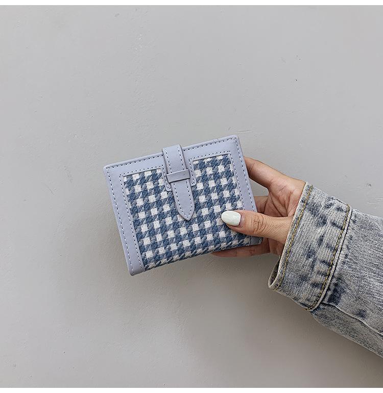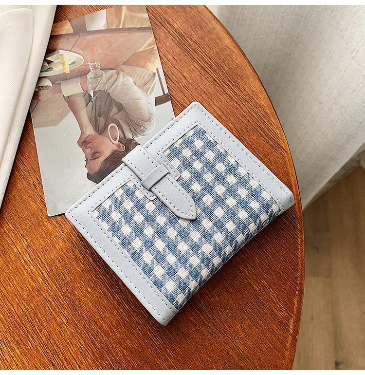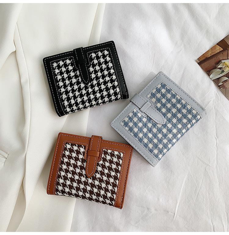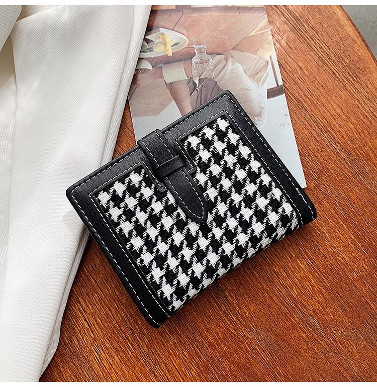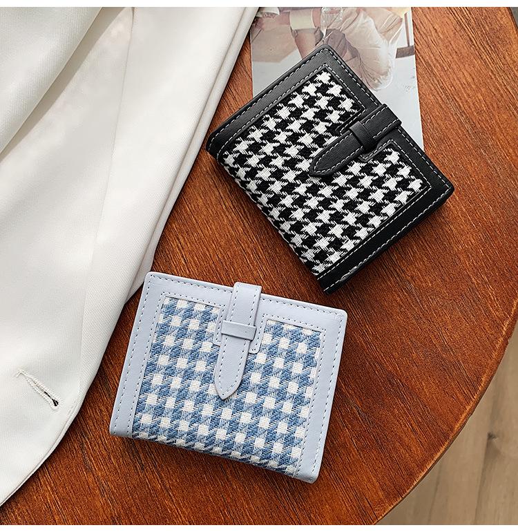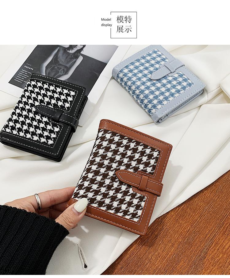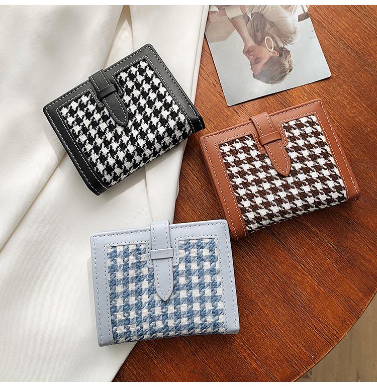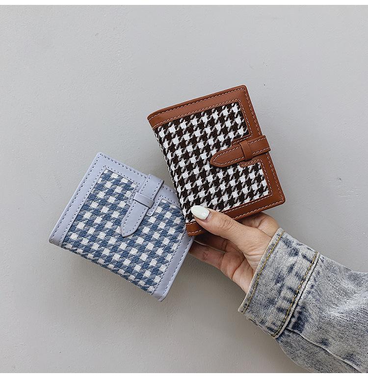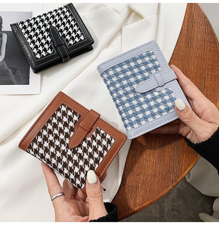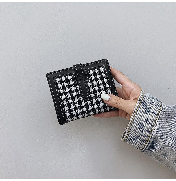 Cartera corta de lana con diseño de pata de gallo, 20% de descuento, nueva moda coreana, 2022. Monedero para estudiantes, venta al por mayor.