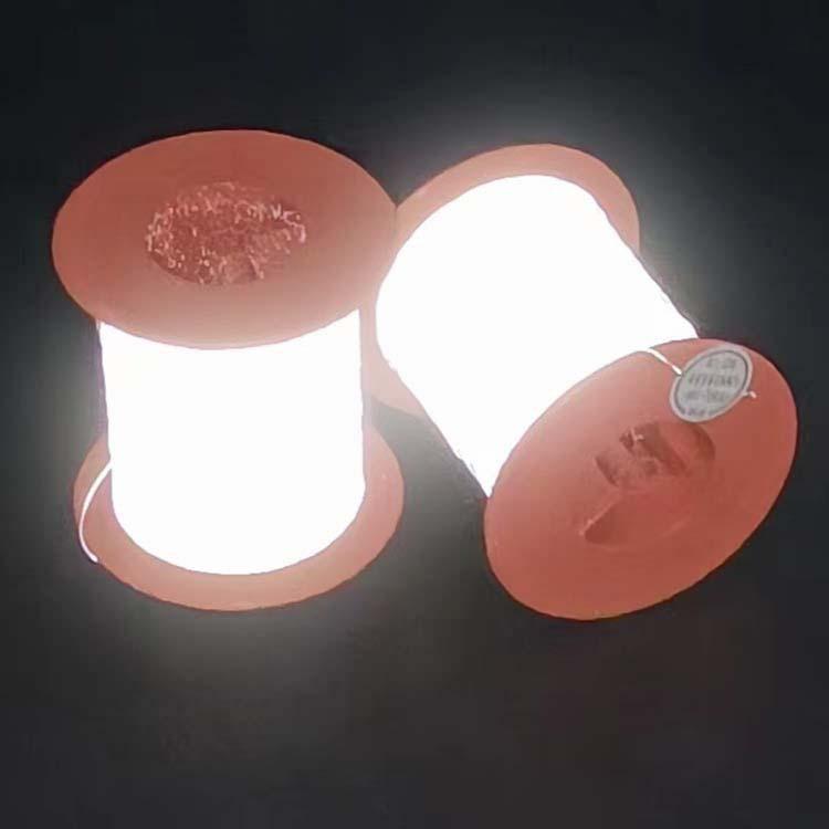 | Los fabricantes de hilo reflectante de 0,15 mm suministran hilo reflectante de doble cara de alto brillo blanco puro e hilo trenzado de cinta reflectante. |