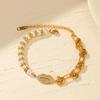 Pulsera de concha de oso adorable de moda coreana para mujer, pulsera de cuentas elásticas de acero de titanio y oro rosa con temperamento de mascota adorable