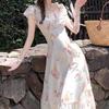 Elegante vestido de madre socialité nuevo vestido de verano de algodón y lino hasta la rodilla de alta gama con falda floral estilo festivo de verano