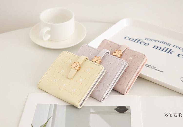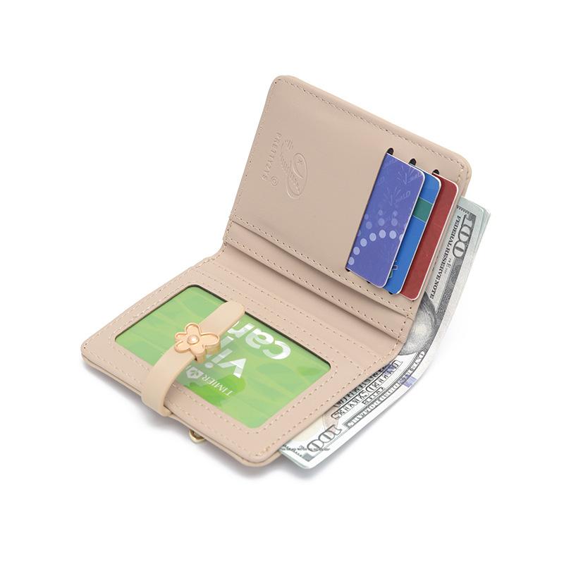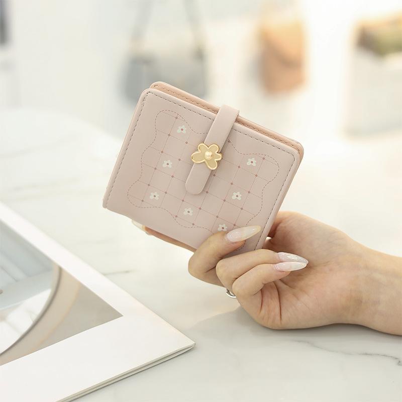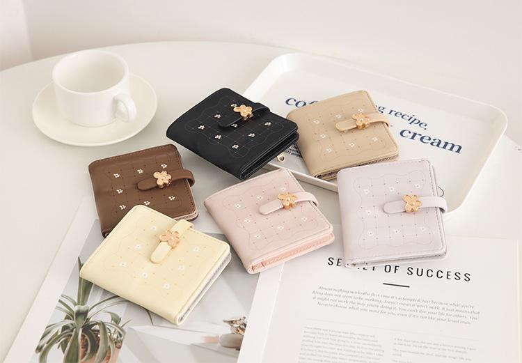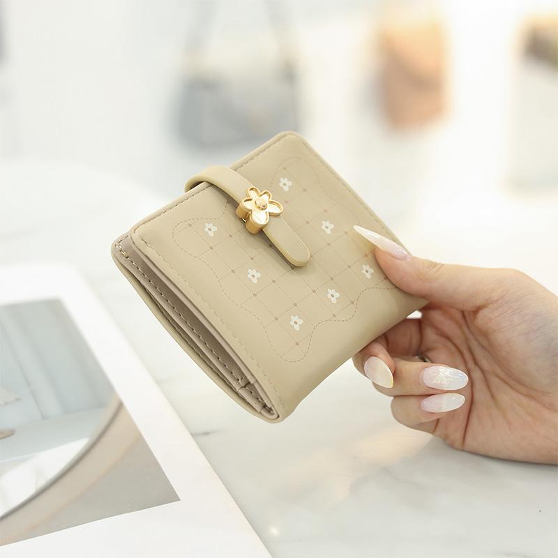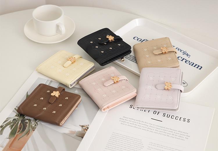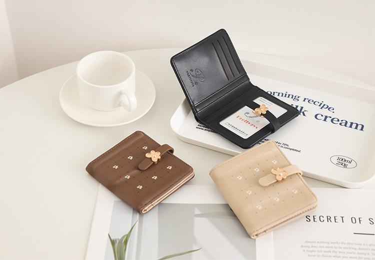| Cartera para comercio exterior transfronterizo de Amazon para mujer, corta, estilo japonés y coreano, fresca, de piel sintética, triple, con múltiples ranuras para tarjetas, cartera de nicho para mujer |