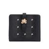 | Cartera de mujer corta japonesa y coreana, pequeña, fresca, de PU, simple, de color sólido, con personalidad, con colgante de hoja, bolso de mano de tres pliegues para mujer |