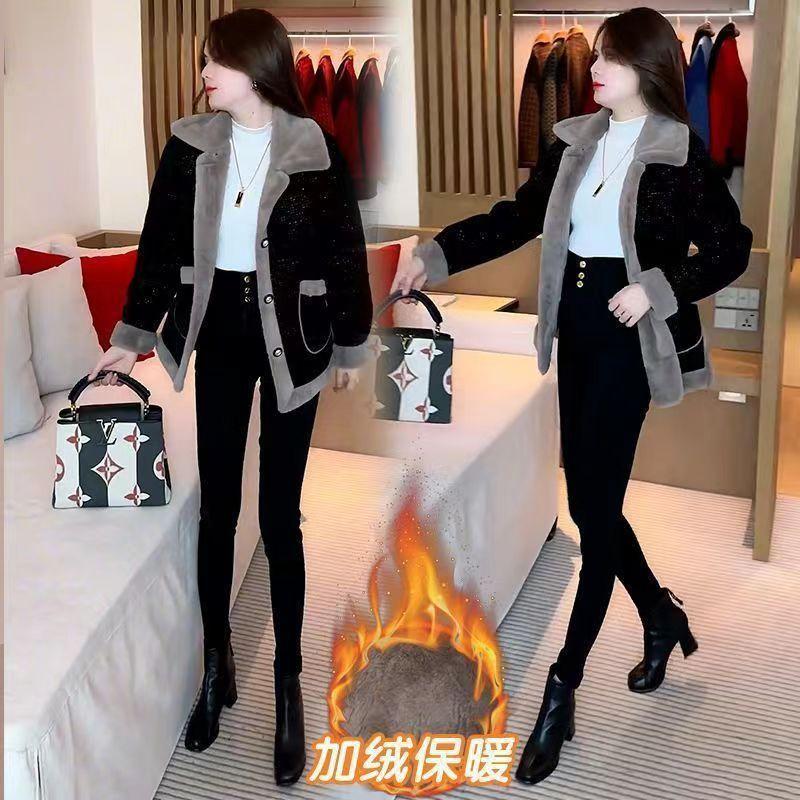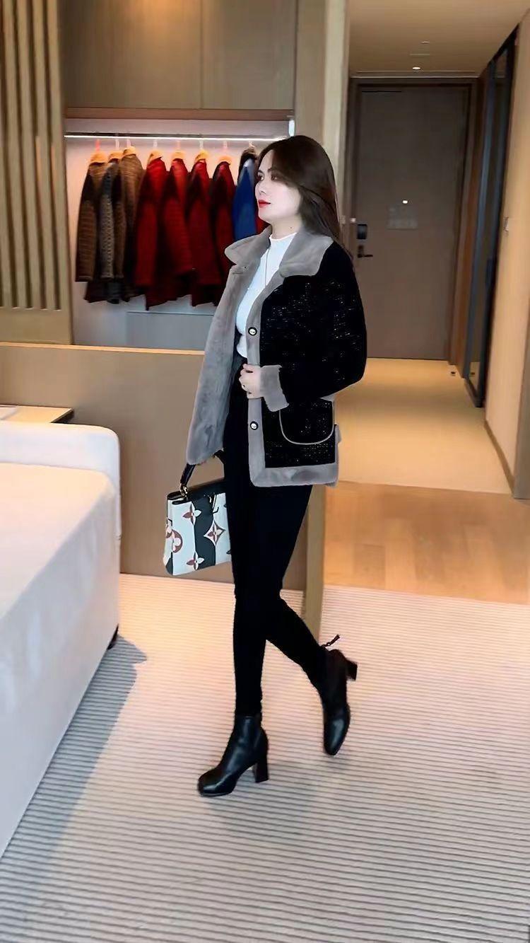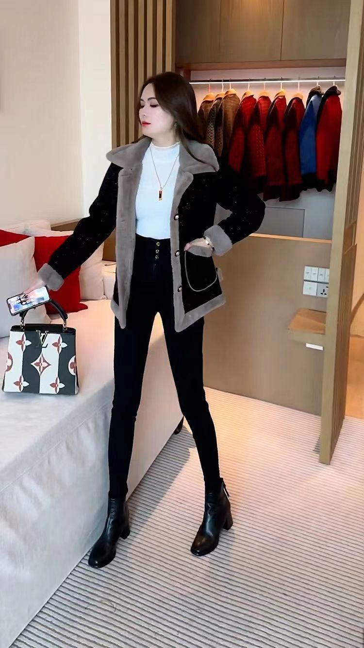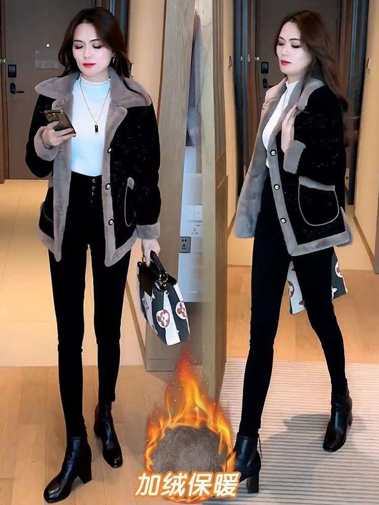 Abrigo grueso forrado de polar para otoño e invierno 2024, nuevo temperamento extranjero para mujer, pequeño abrigo cálido de paño de lana, atuendo moderno