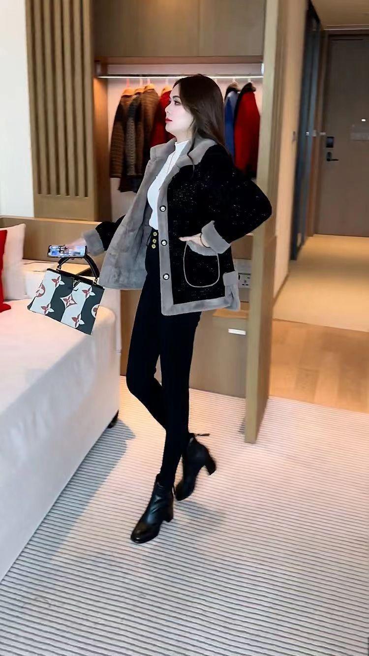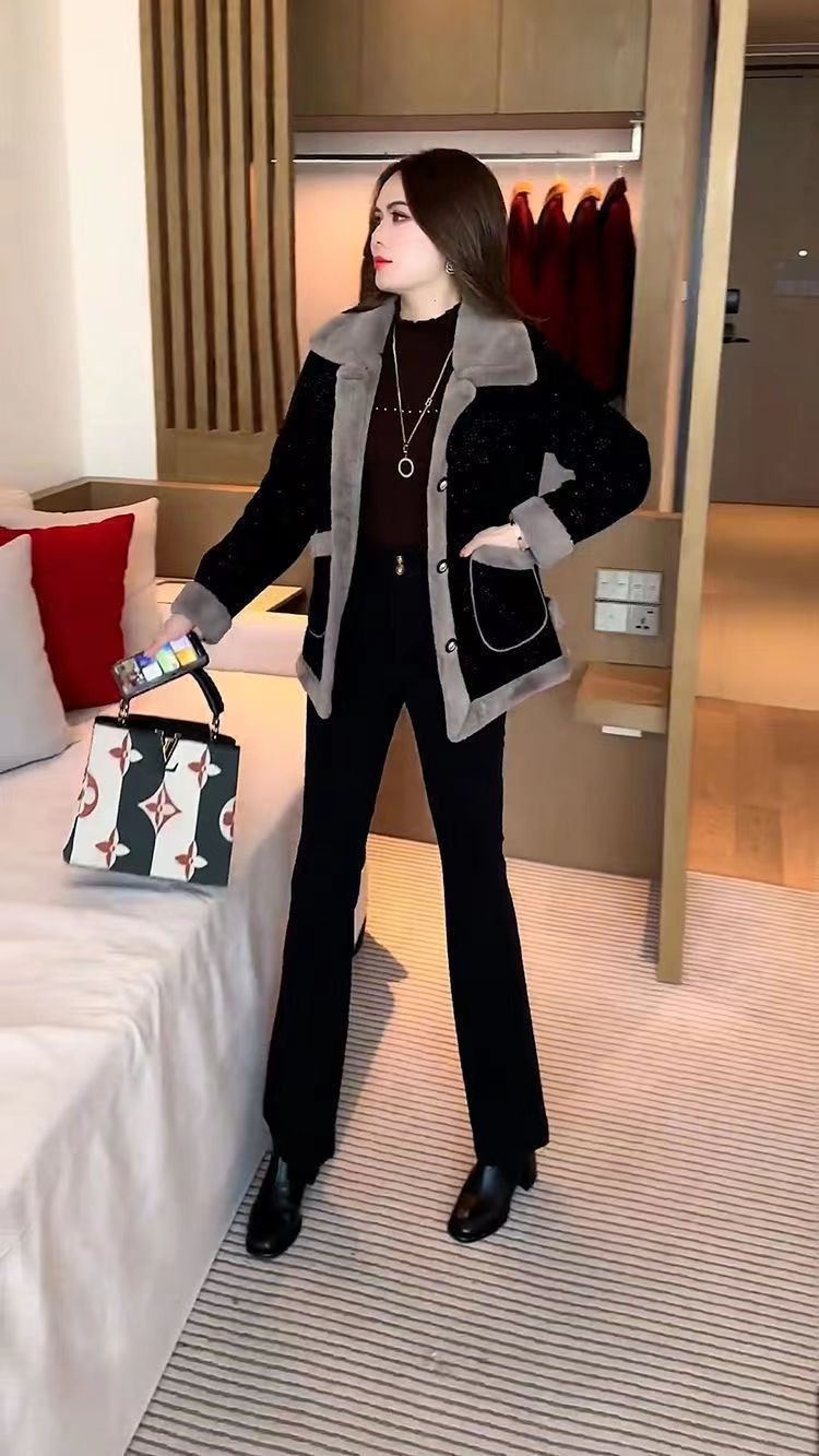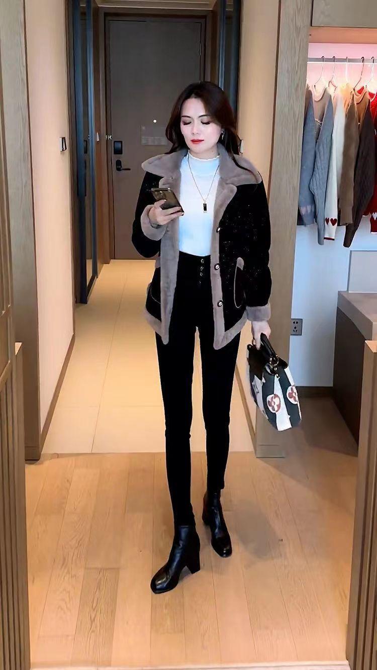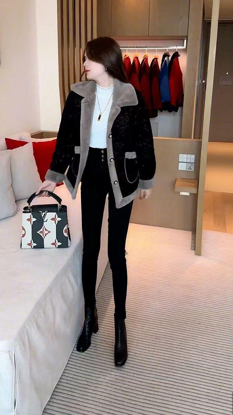 Abrigo grueso forrado de polar para otoño e invierno 2024, nuevo temperamento extranjero para mujer, pequeño abrigo cálido de paño de lana, atuendo moderno