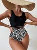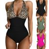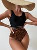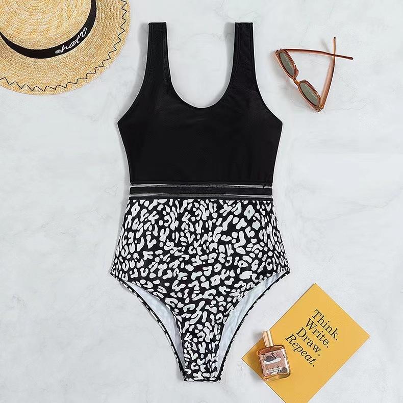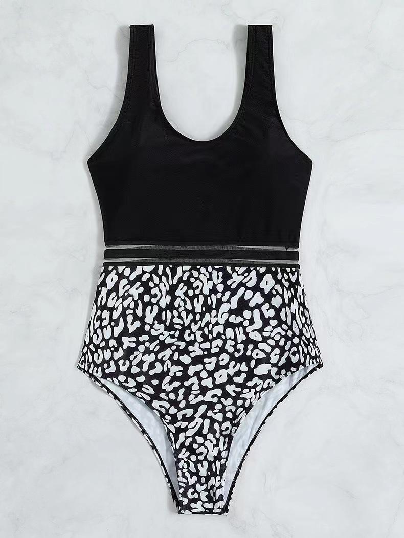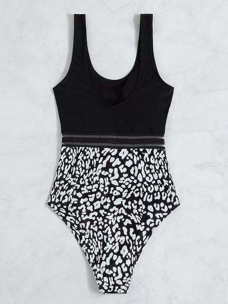 Bikini de una pieza con tirantes sexy y estampado de leopardo, nuevo modelo Amazon europeo y americano 2024, traje de baño de cintura alta para mujer