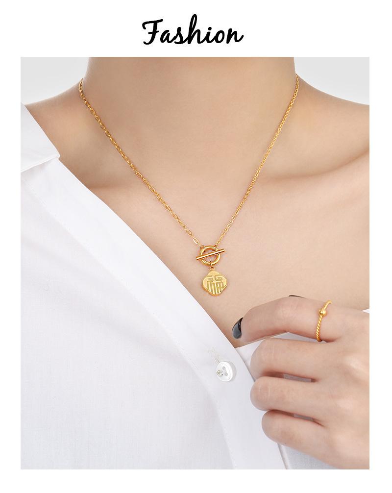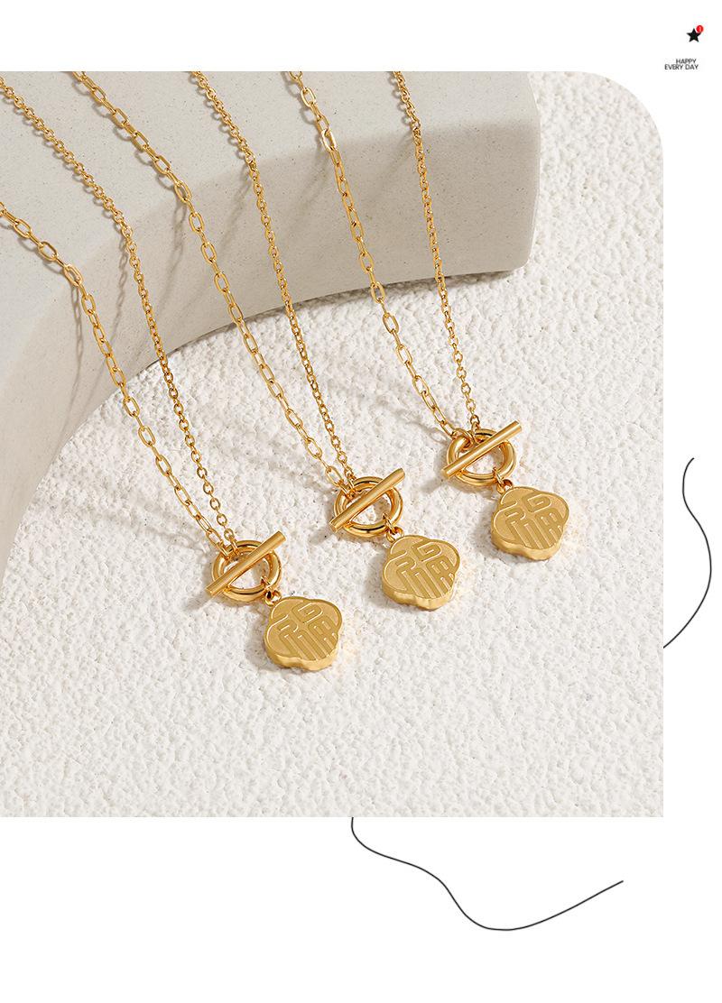 Nuevo estilo chino, moda nacional, nuevo estilo, collar con hebilla Ot de carácter Fu de nicho simple, cadena de clavícula de acero de titanio chapada en oro personalizada para mujer.