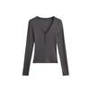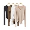 Camiseta Básica de Cuello en V para Mujer de Manga Larga Ajustada Otoño e Invierno Nueva Camiseta de Algodón Acanalado Corte Slim Europeo Estilo Occidental