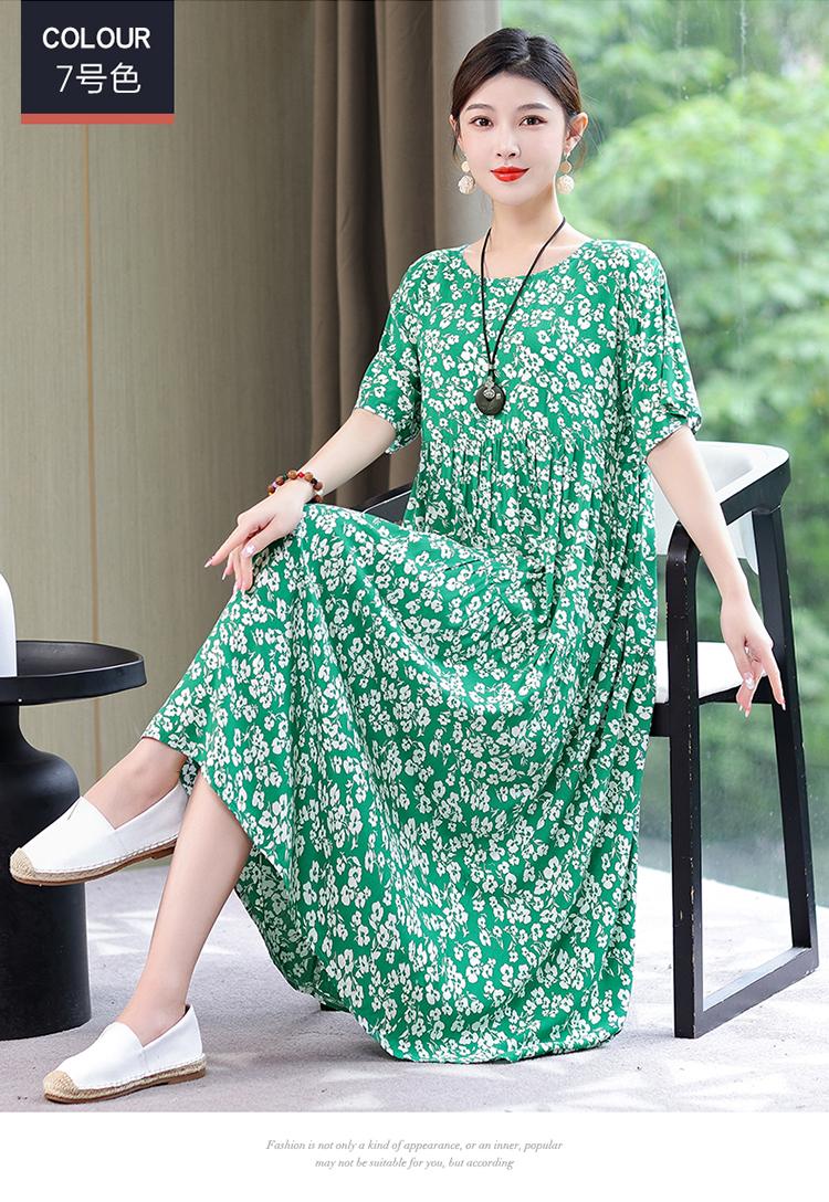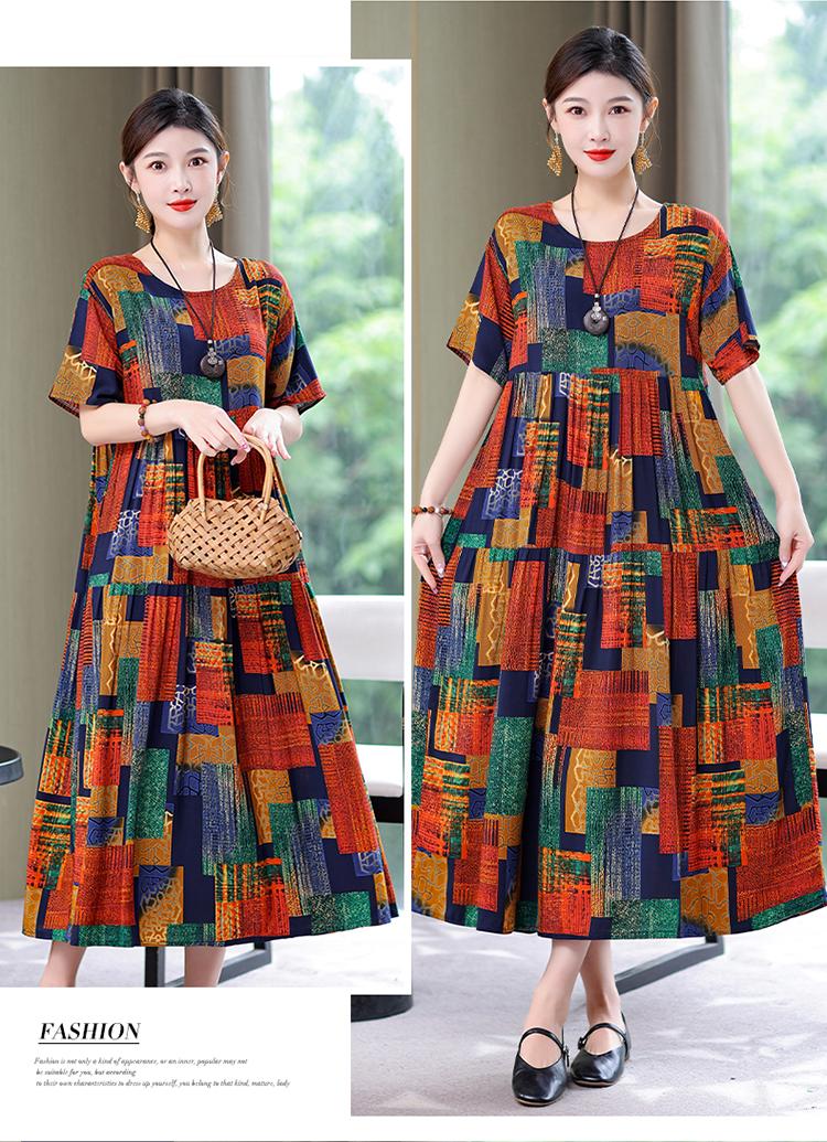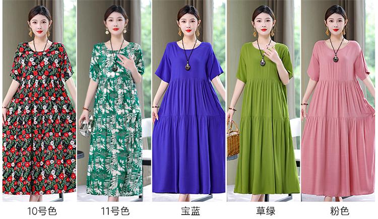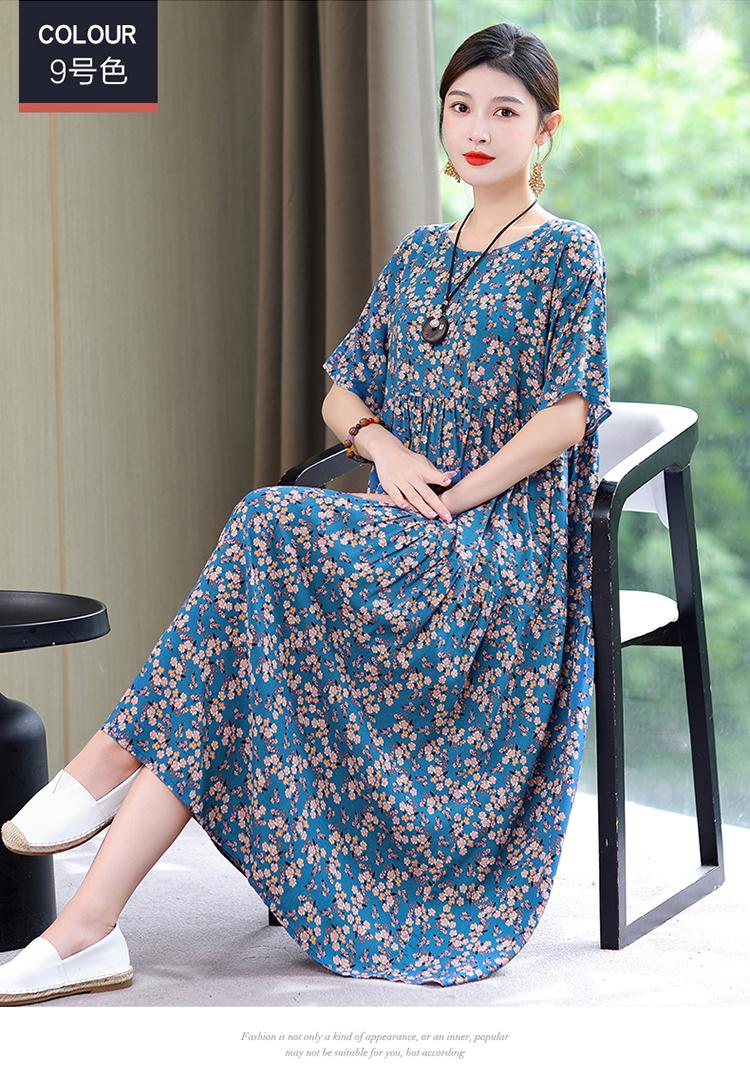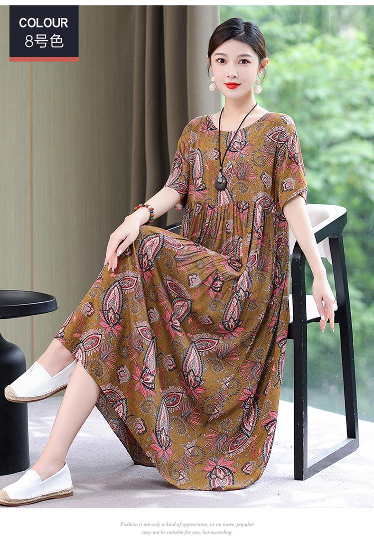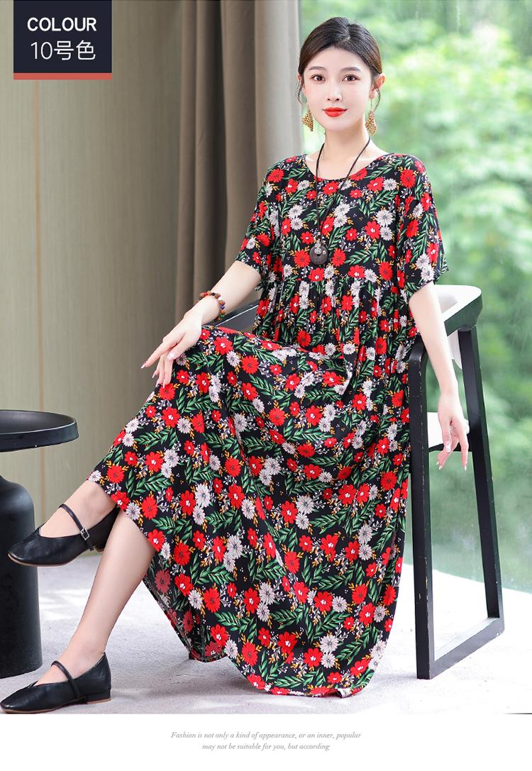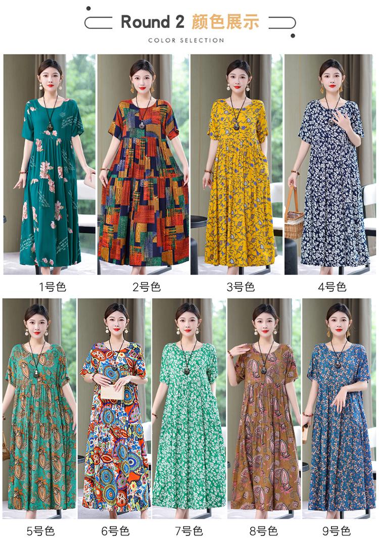 Vestido de seda de algodón de moda de nuevo estilo 2023 para madres de mediana edad, falda larga de verano de talla grande para mujer