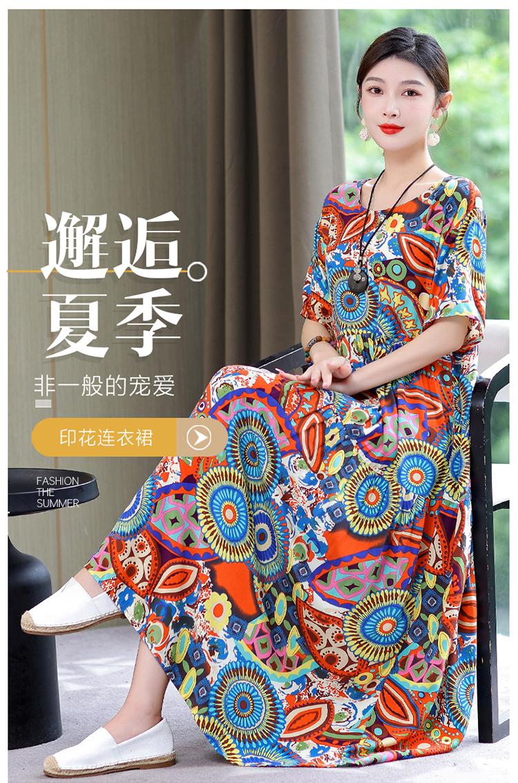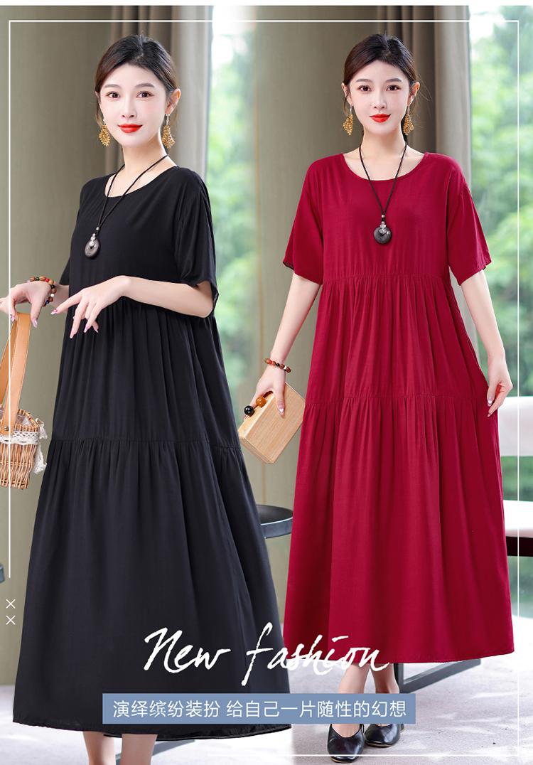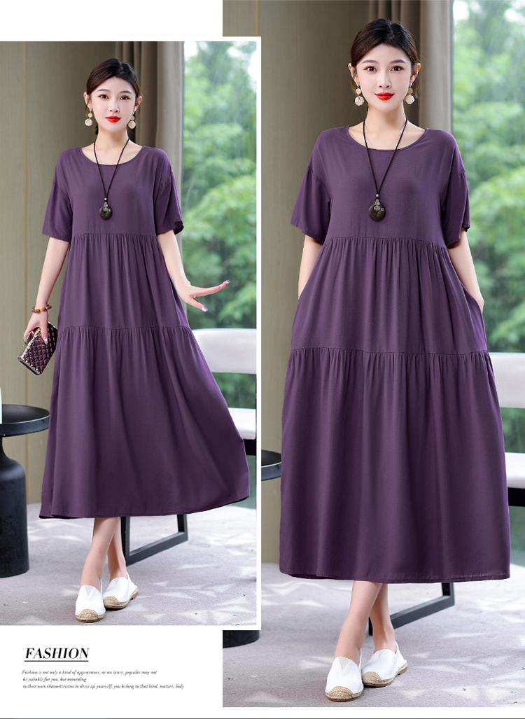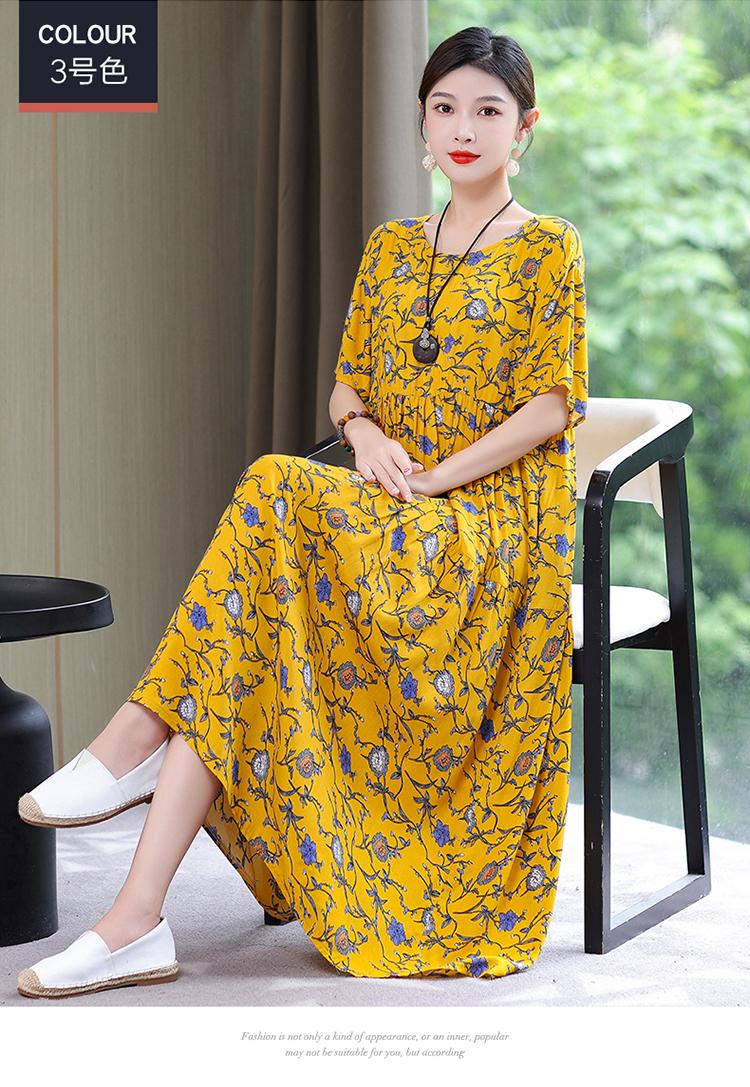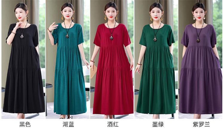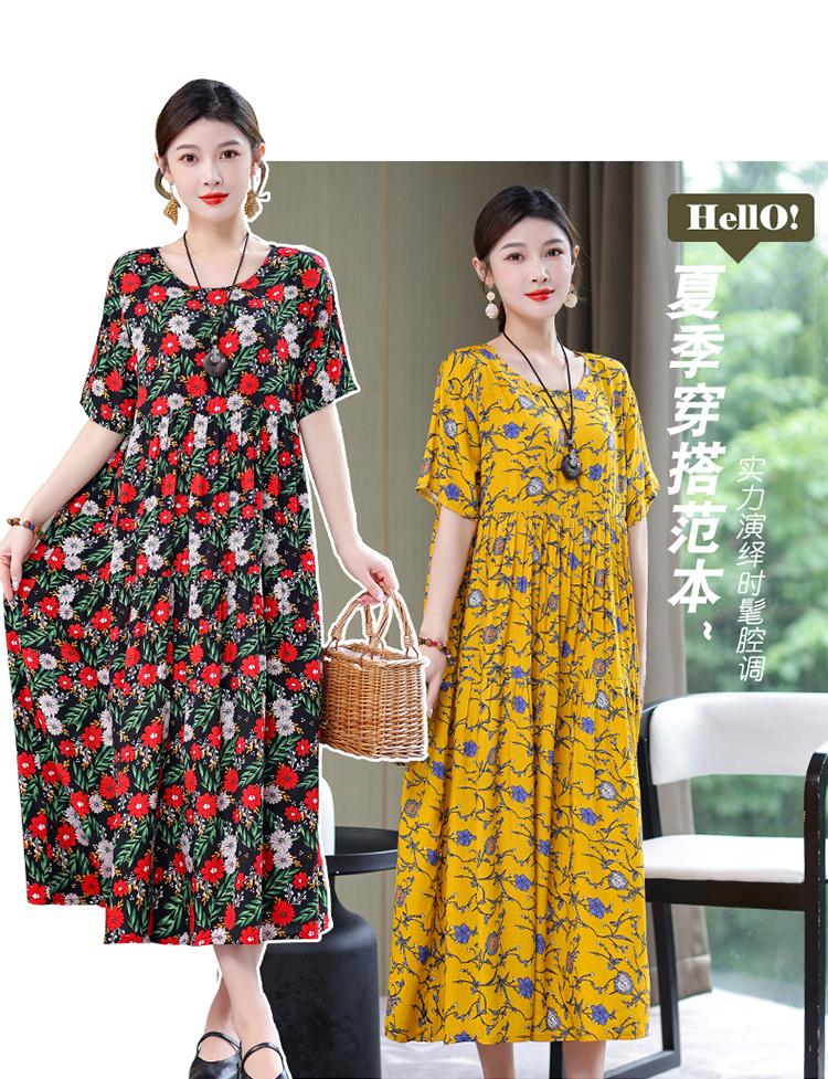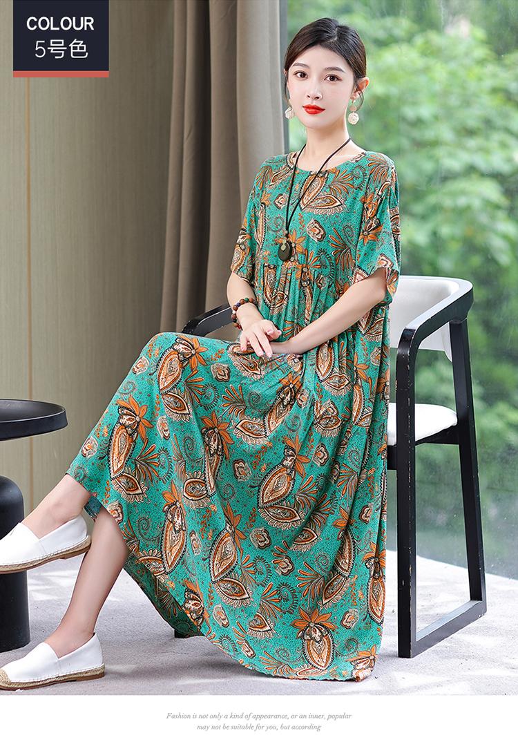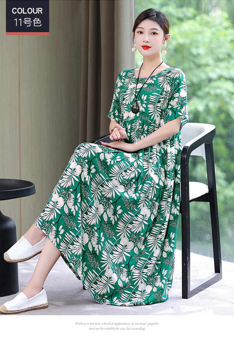 Vestido de seda de algodón de moda de nuevo estilo 2023 para madres de mediana edad, falda larga de verano de talla grande para mujer