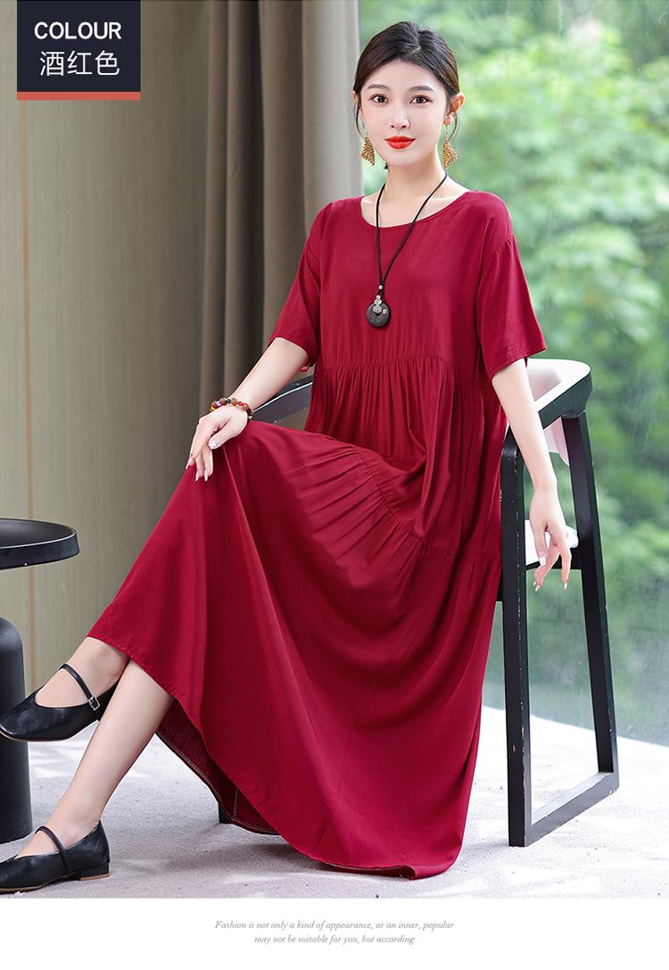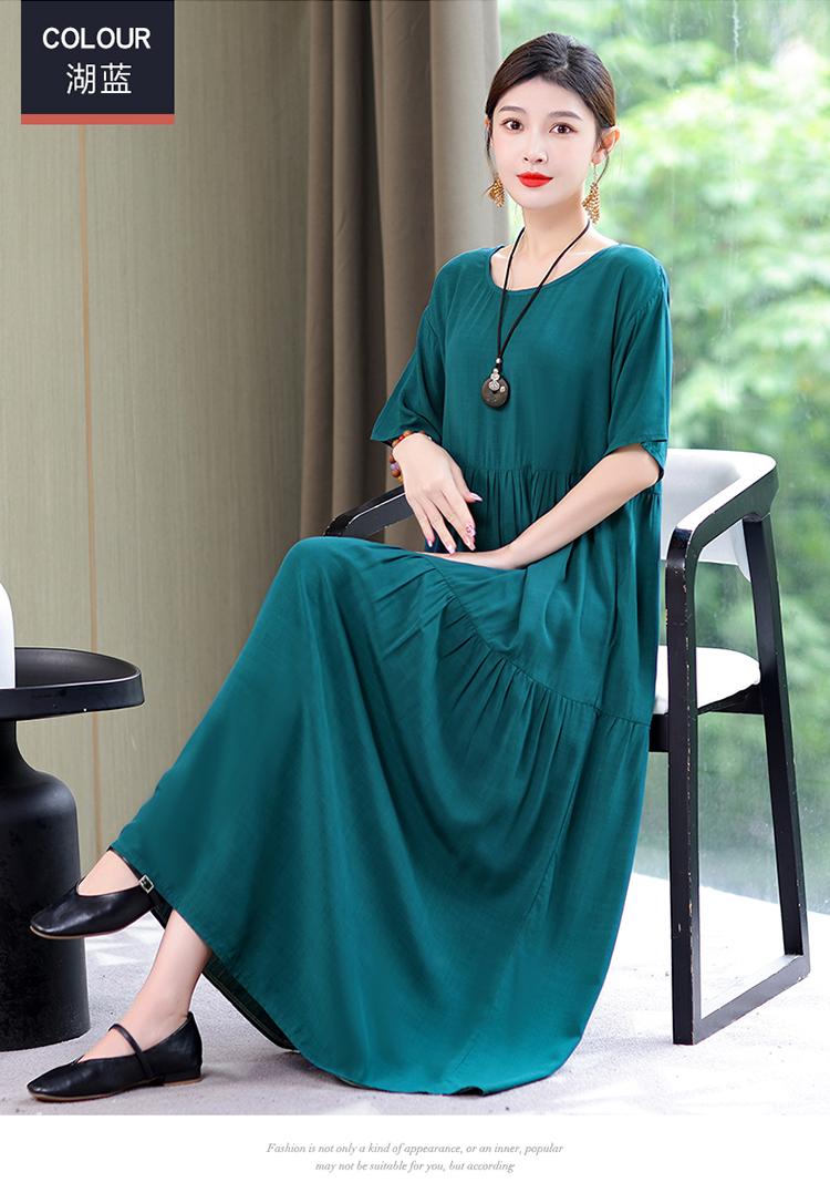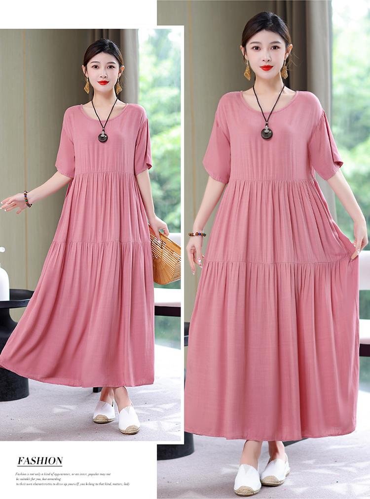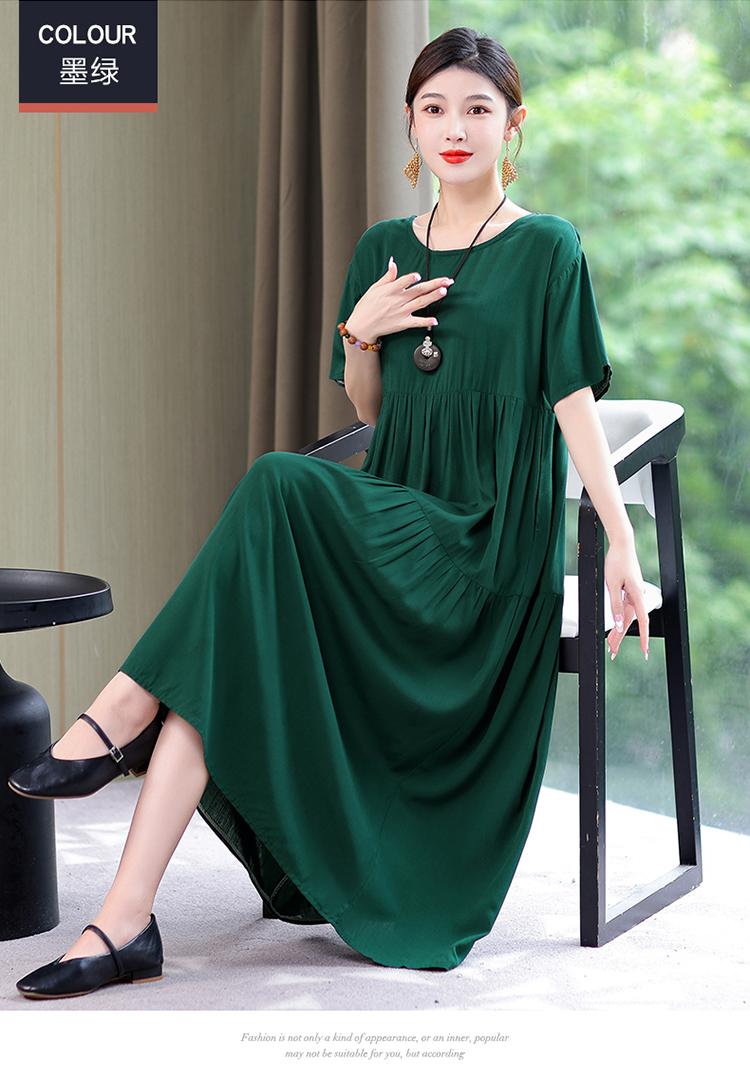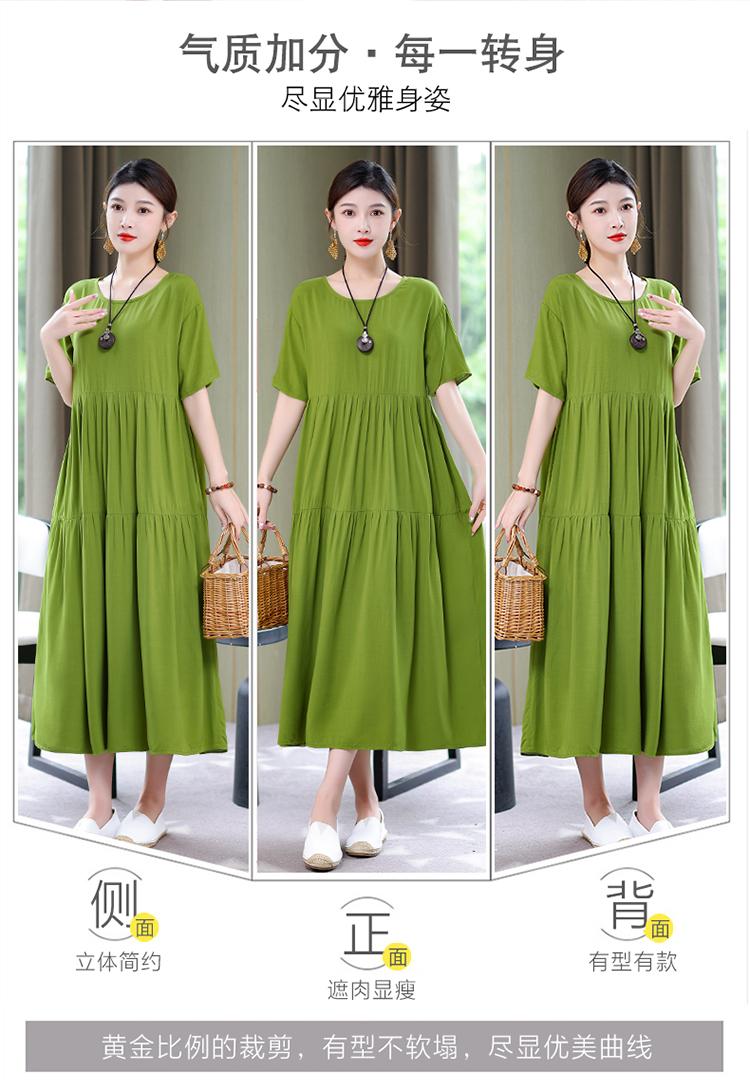 Vestido de seda de algodón de alta gama para mujer, nuevo temperamento, de verano, de alta gama, para madre joven, de talla grande, con vuelo grande, para playa, adelgazante