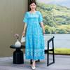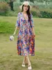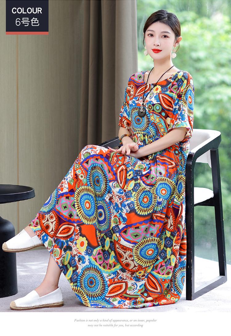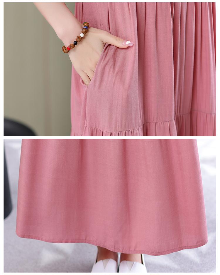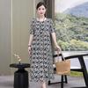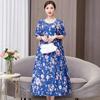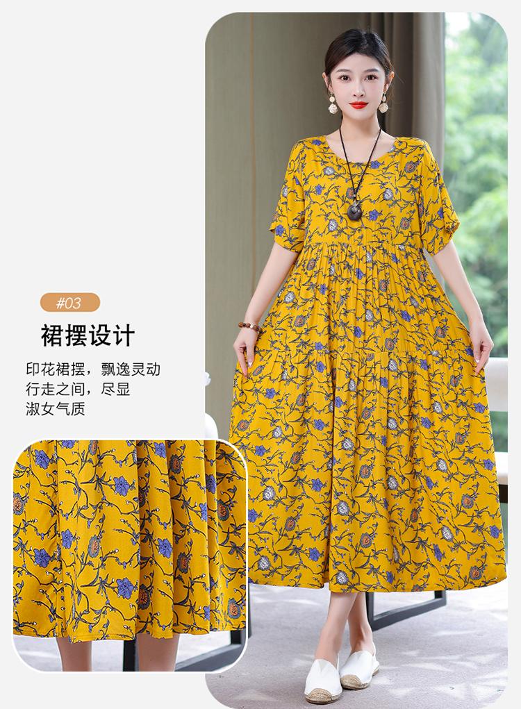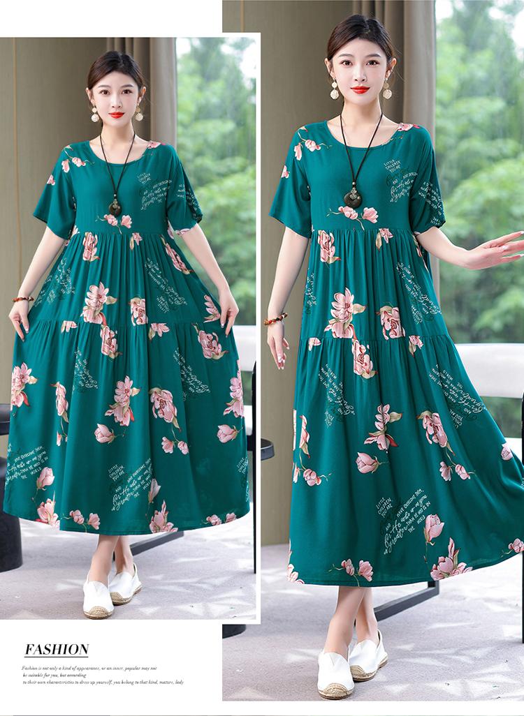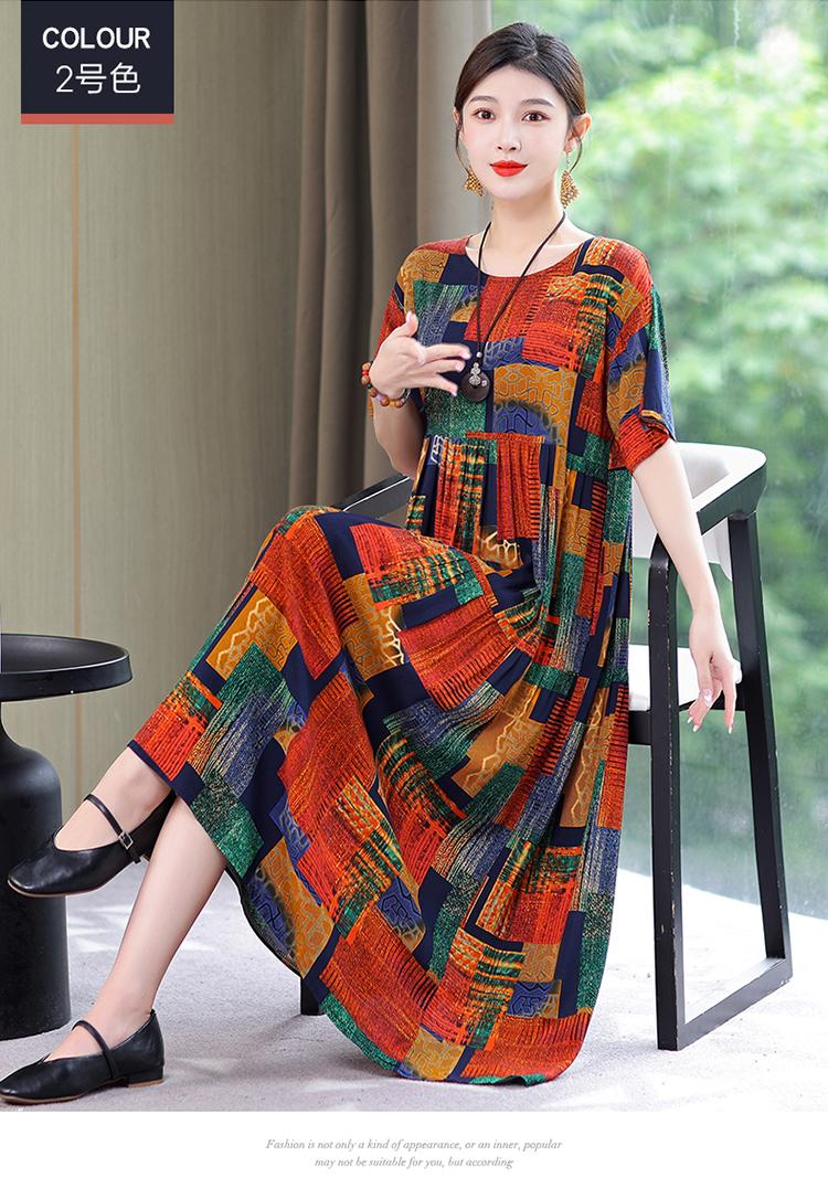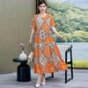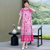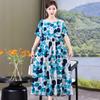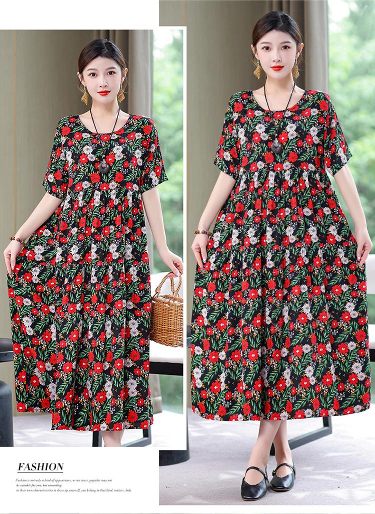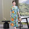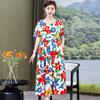 Vestido de seda de algodón de alta gama nuevo de 2023, prenda exterior de verano de moda para madres de mediana edad, falda larga con estampado de bolsillo para lucir esbelta.