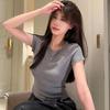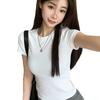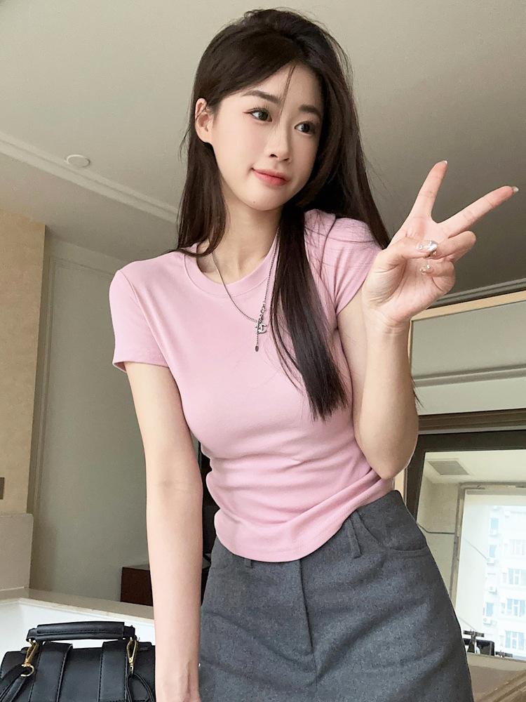 Camiseta Rosa Americana Hombro Derecho Mujer Manga Corta Verano 2025 Nueva Ajustada Sexy Camiseta Pequeña Top Básico Versátil
