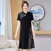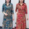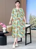 Vestido elegante de algodón y seda de manga media estilo occidental para mujer Verano Nuevo Talla grande Suelto Ropa de madre Temperamento Estampado Falda larga