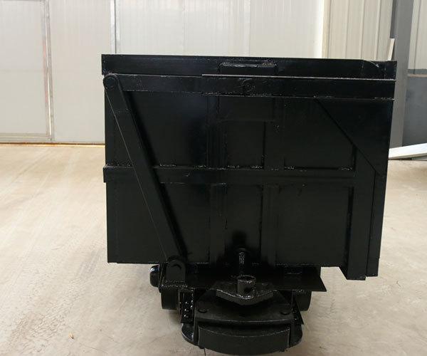 El vagón minero de descarga lateral es un equipo eficiente de autodescarga. No tiene capacidad por sí solo y debe utilizarse junto con la locomotora de tracción como equipo de carga y descarga minera. El vagón puede abrirse por uno o ambos lados, y puede inclinarse gracias al riel curvo de descarga de mineral instalado en el punto de descarga. La barra de tracción permite abrir la puerta lateral para descargar el mineral.