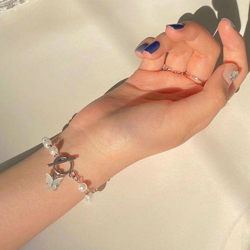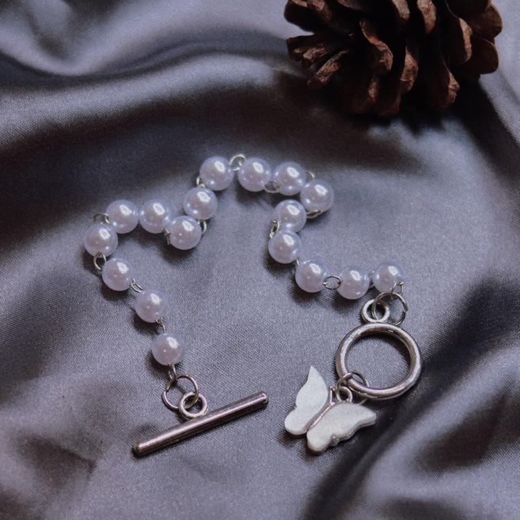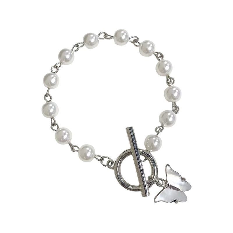 Pulsera de Perlas con Colgante de Mariposa Super Hada Estilo Japonés y Coreano para Mujer, Elegante, Simple, Retro, para Novia, Estudiante