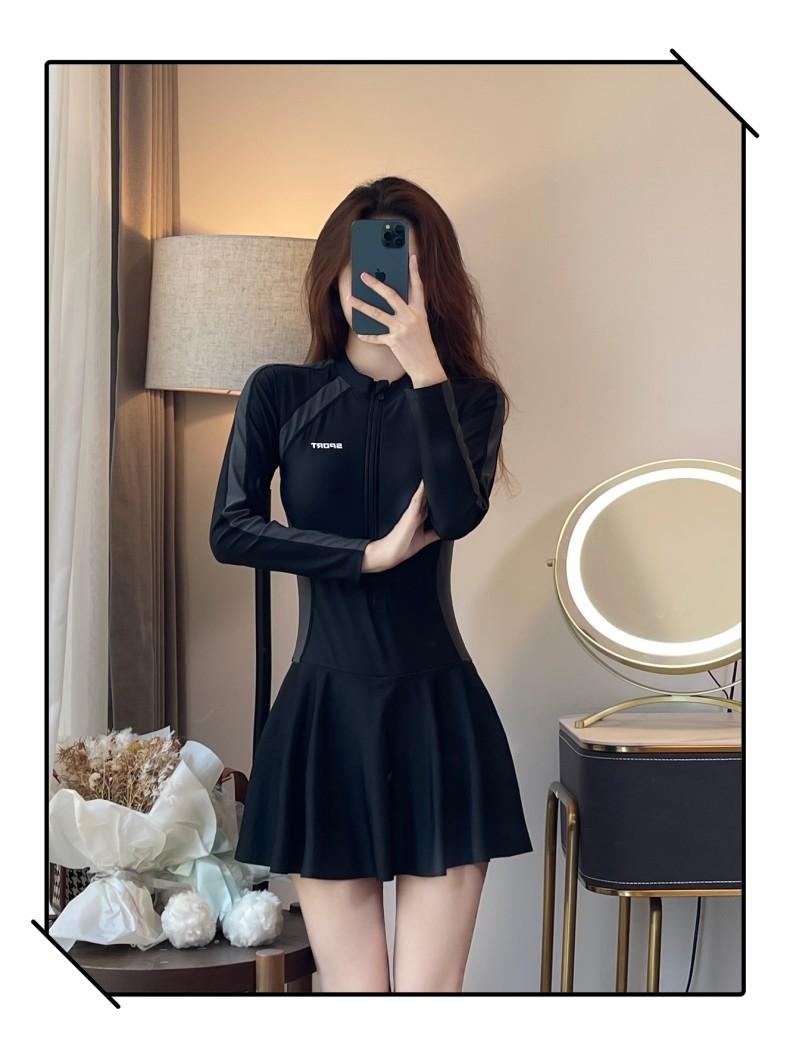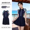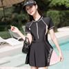 Traje de Baño Entero para Mujer, Adelgazante, Cubre Vientre, Traje de Baño de Verano, Piscina para Estudiantes, Deportivo Conservador de Manga Corta