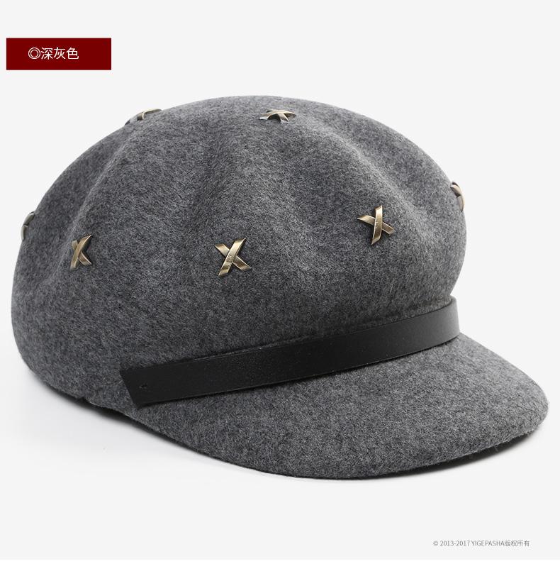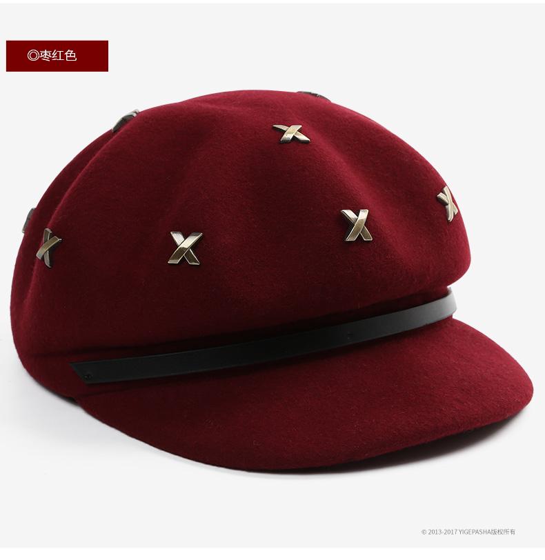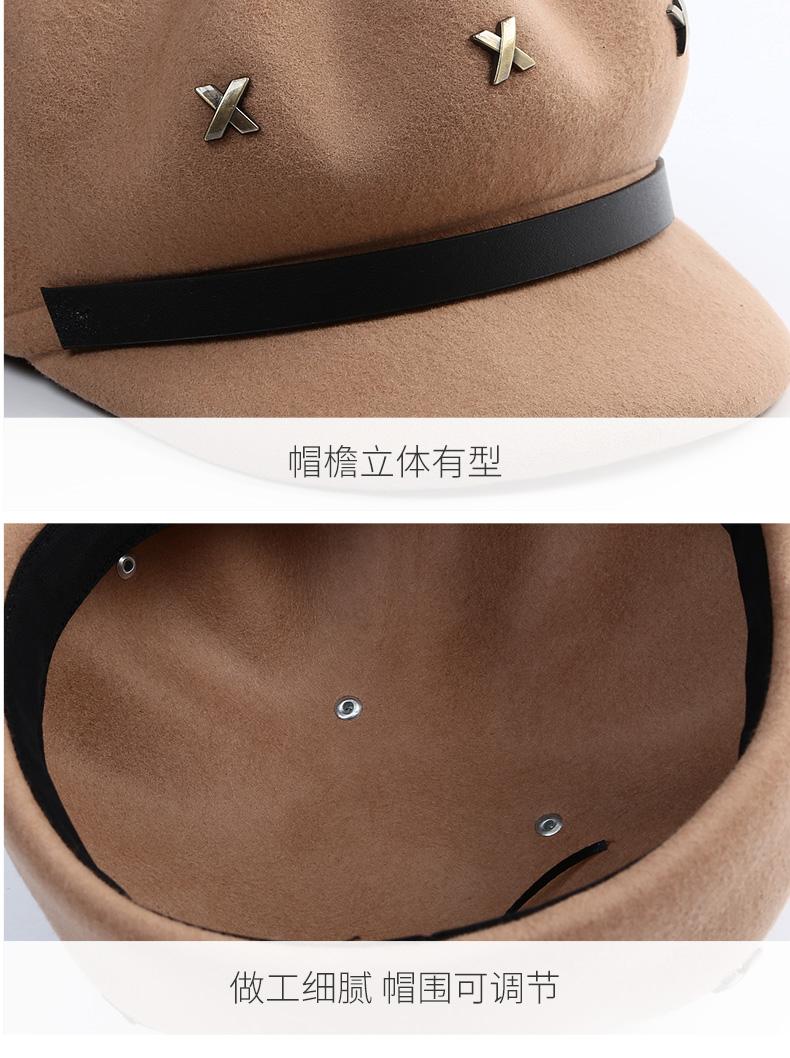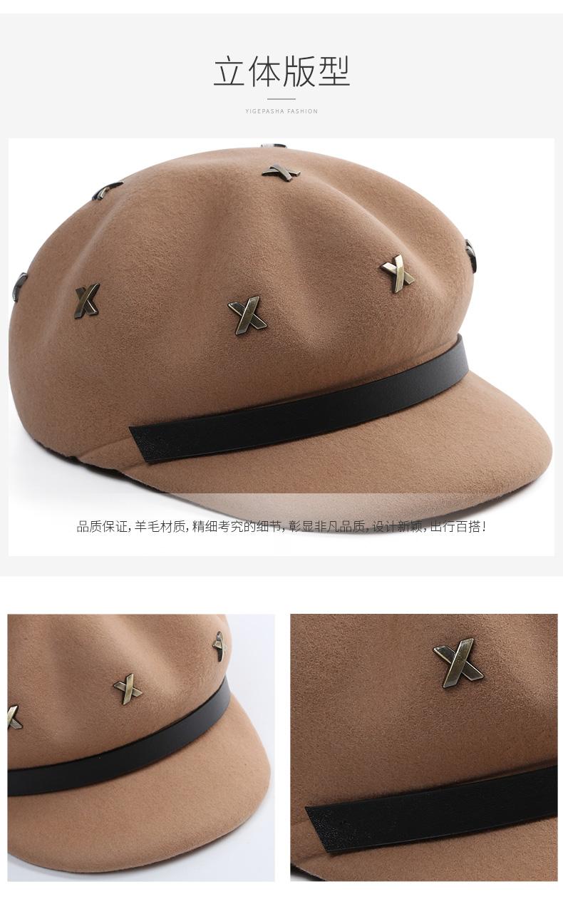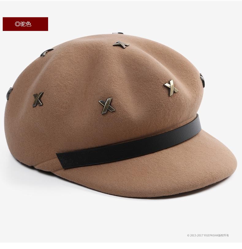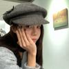 Boina de lana estilo coreano de invierno para mujer, gorro de pintor con remaches vintage, gorro octogonal con lengüeta de pato británica, gorro de otoño e invierno