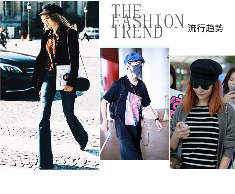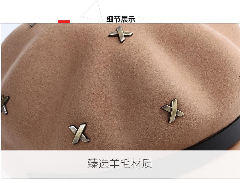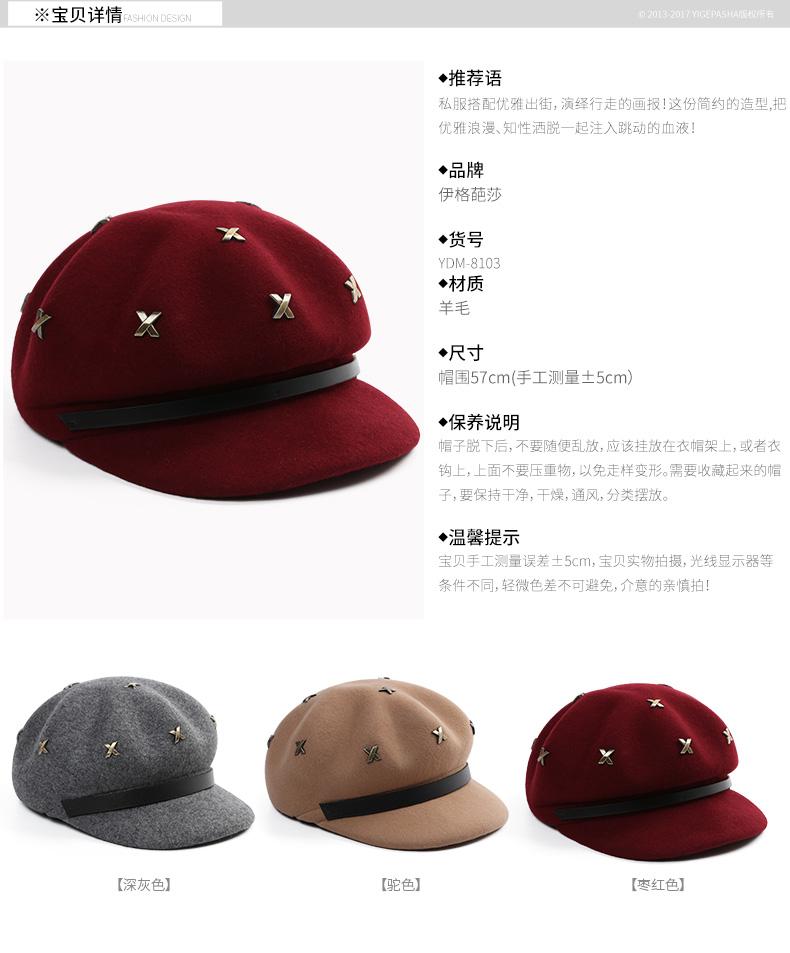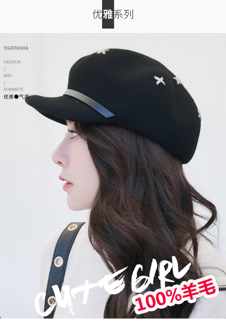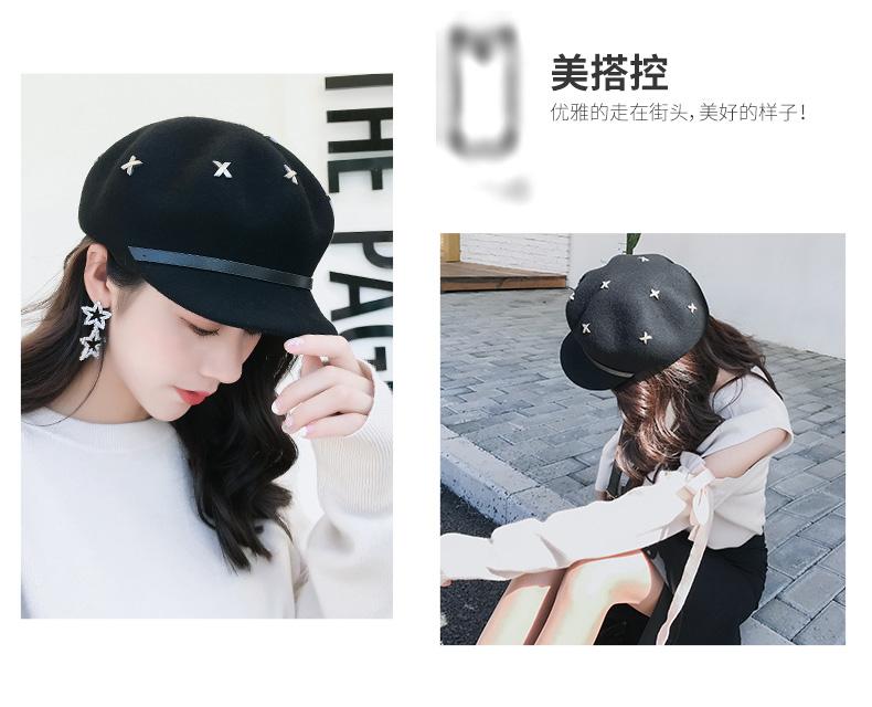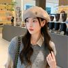 Boina de lana estilo coreano de invierno para mujer, gorro de pintor con remaches vintage, gorro octogonal con lengüeta de pato británica, gorro de otoño e invierno