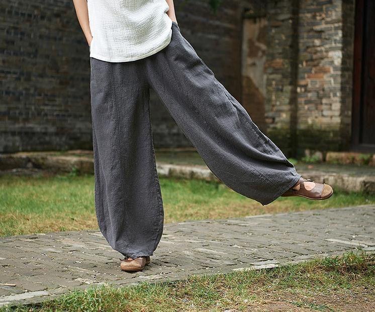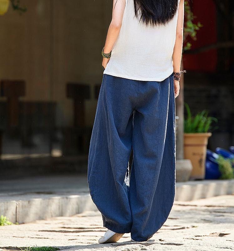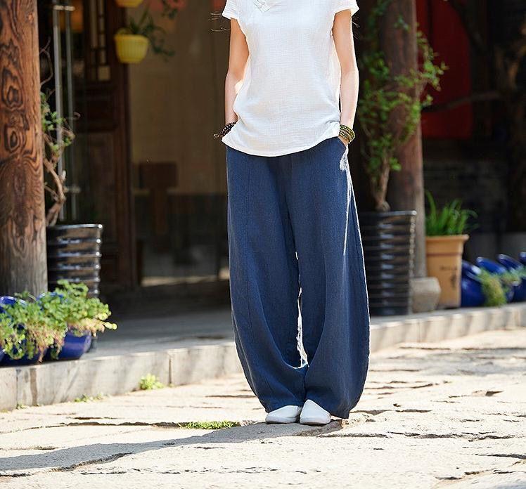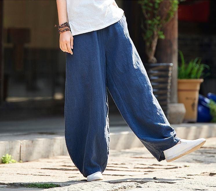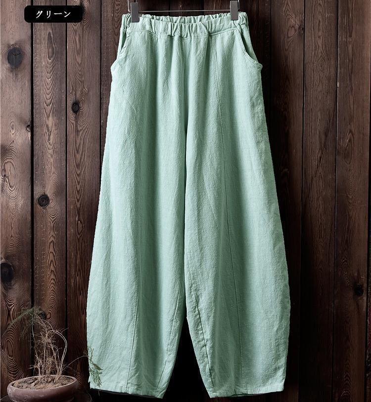 Bloomers Talla Grande Pantalones de Mujer Pantalones de Pierna Ancha Primavera y Verano Sueltos Rábano Algodón Lino Artísticos Retro Casuales Pantalones Largos