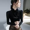 Camiseta básica de cuello medio alto modal para mujer, para uso interior, primavera/otoño/invierno, cuello medio, manga larga, camiseta exterior ajustada.