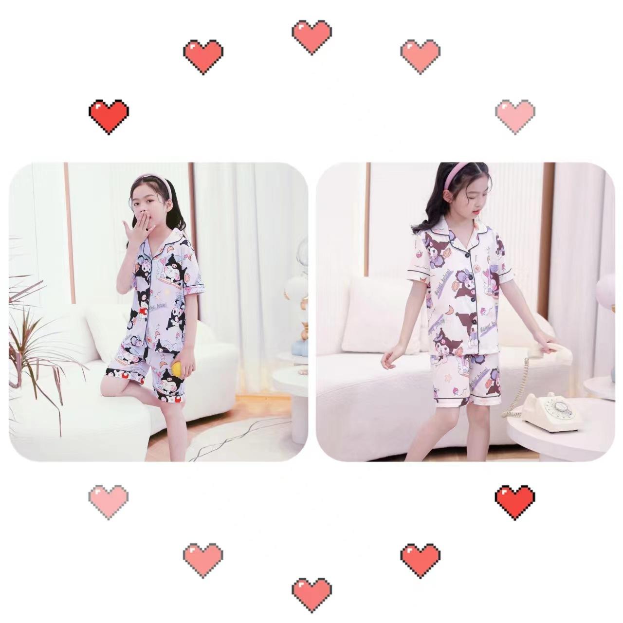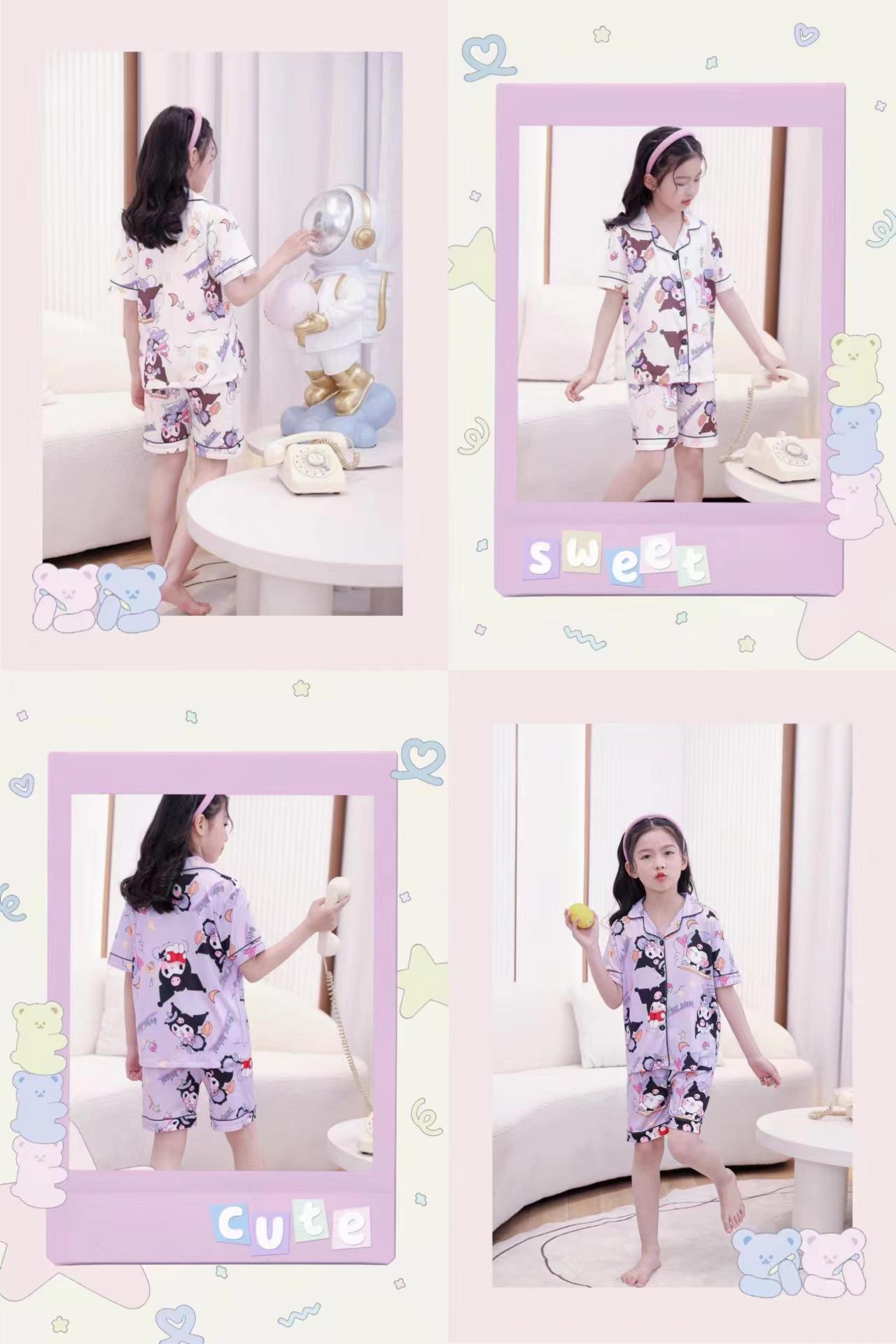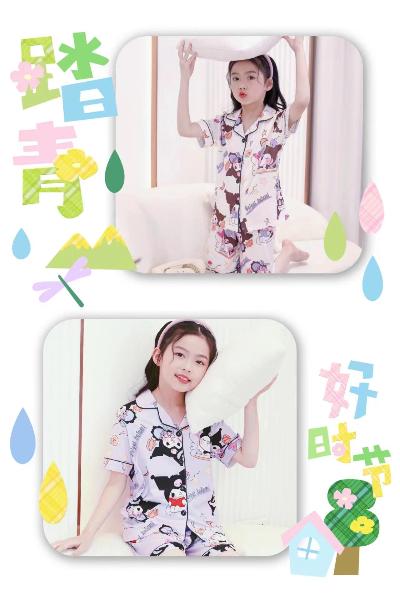Pijamas de verano para niños y niñas, pantalones cortos de manga corta, cárdigan con bonitos dibujos animados, conjunto de ropa de casa para niños medianos y grandes.