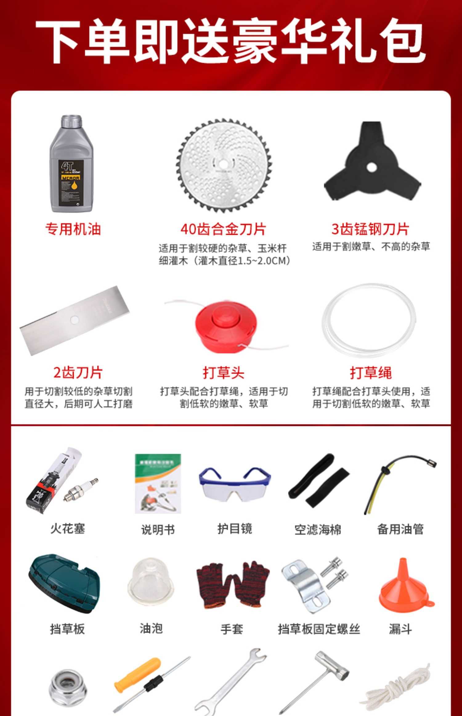 Four-stroke side hanging + gift bag, Four-stroke side hanging + grass lifter + gift bag, Four-stroke side hang...