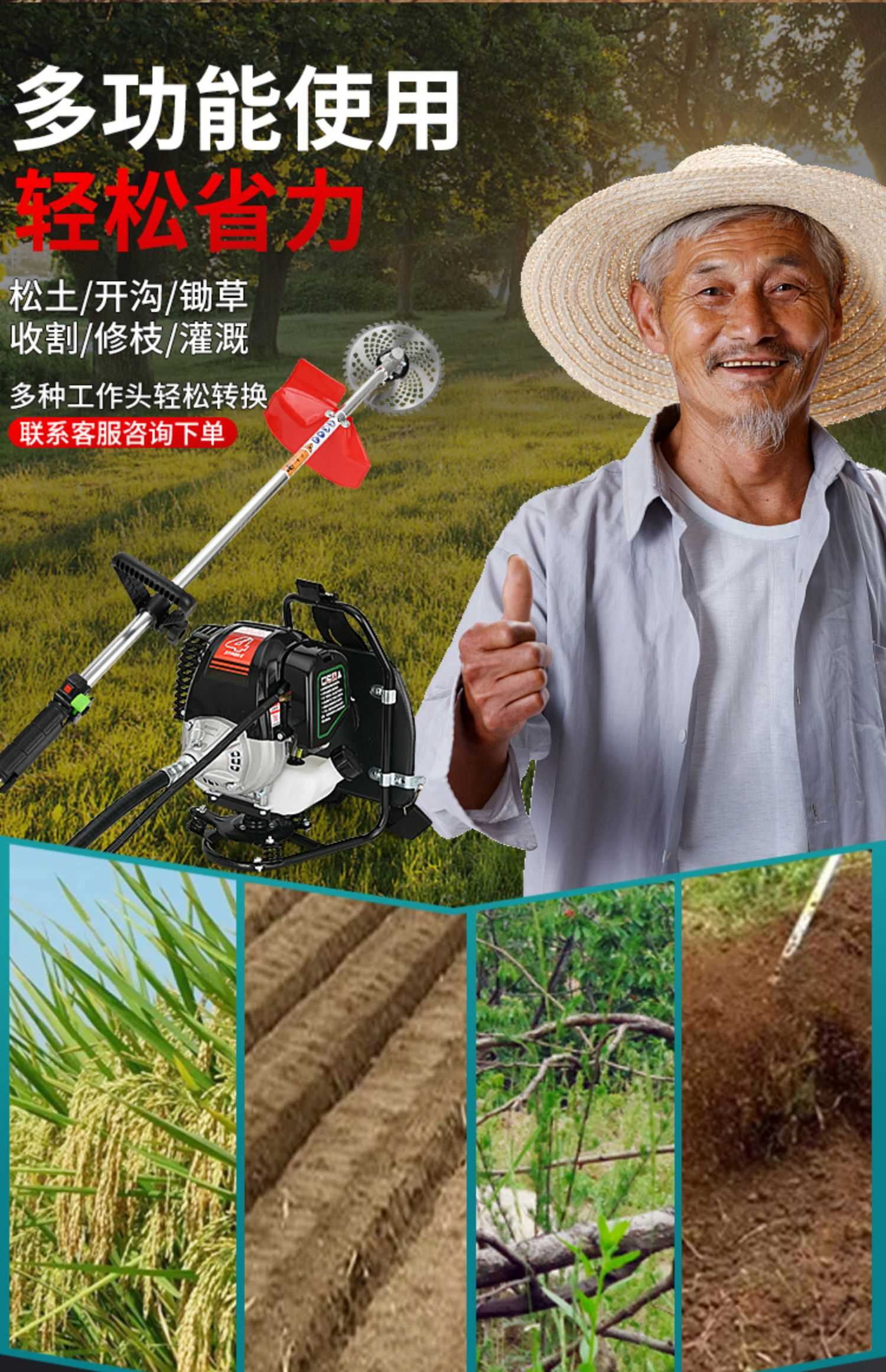 Cortadora de césped Y ha de cuatro tiempos, cortadora de césped a gasolina con mochila, cortadora de arroz agrícola doméstica, cortadora de recuperación de suelo suelto