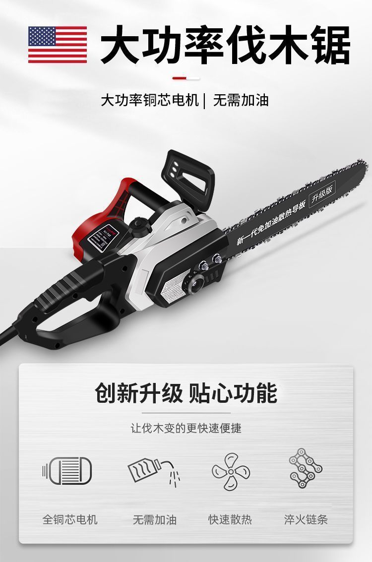 Motosierra eléctrica americana, sierra eléctrica doméstica multifuncional de alta potencia, sierra maderera, sierra eléctrica portátil de grado industrial