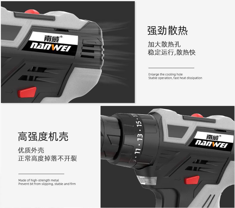 Taladro eléctrico de mano sin escobillas Nanwei, taladro eléctrico multifuncional de litio para el hogar, taladro recargable de doble velocidad, taladro de mano, destornillador eléctrico.