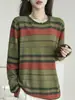 Suéter de hilo de algodón elegante y perezoso con rayas de colores en contraste para otoño e invierno, nueva prenda exterior, suéter de manga larga, top simple de manga larga