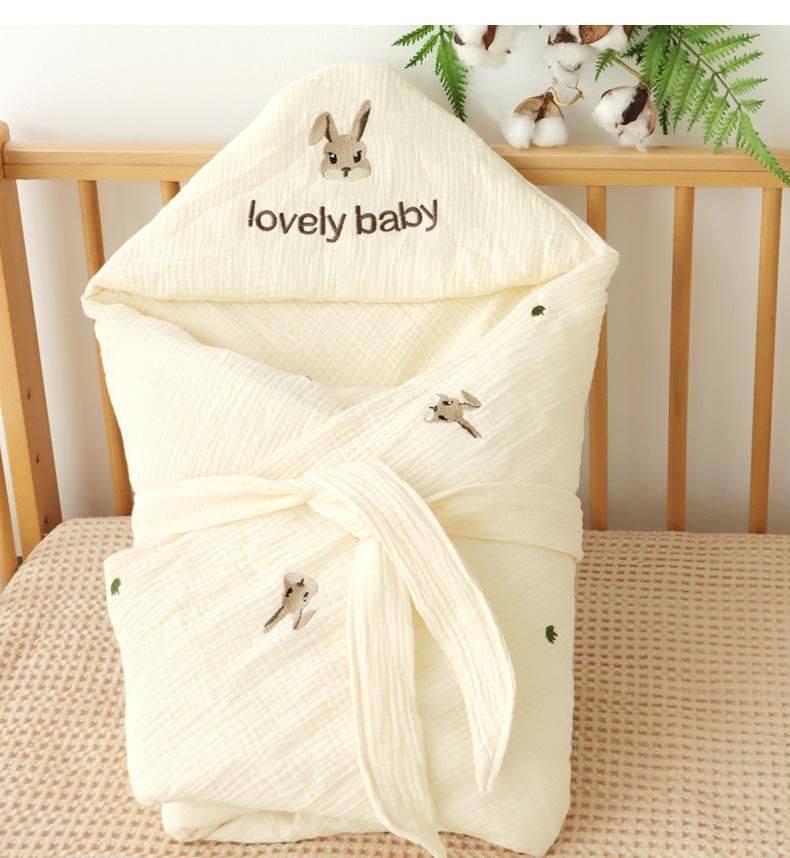 Thin gall bag quilt cover wrinkled gauze beige green leaf rabbit head