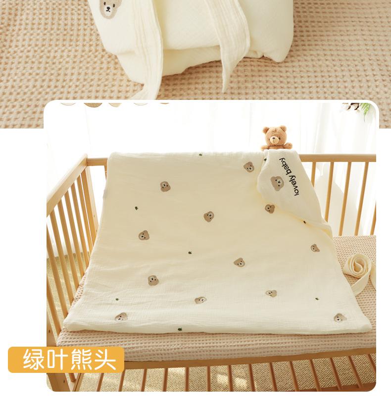 Single pack quilt cover without liner-wrinkled gauze beige green leaf bear head
