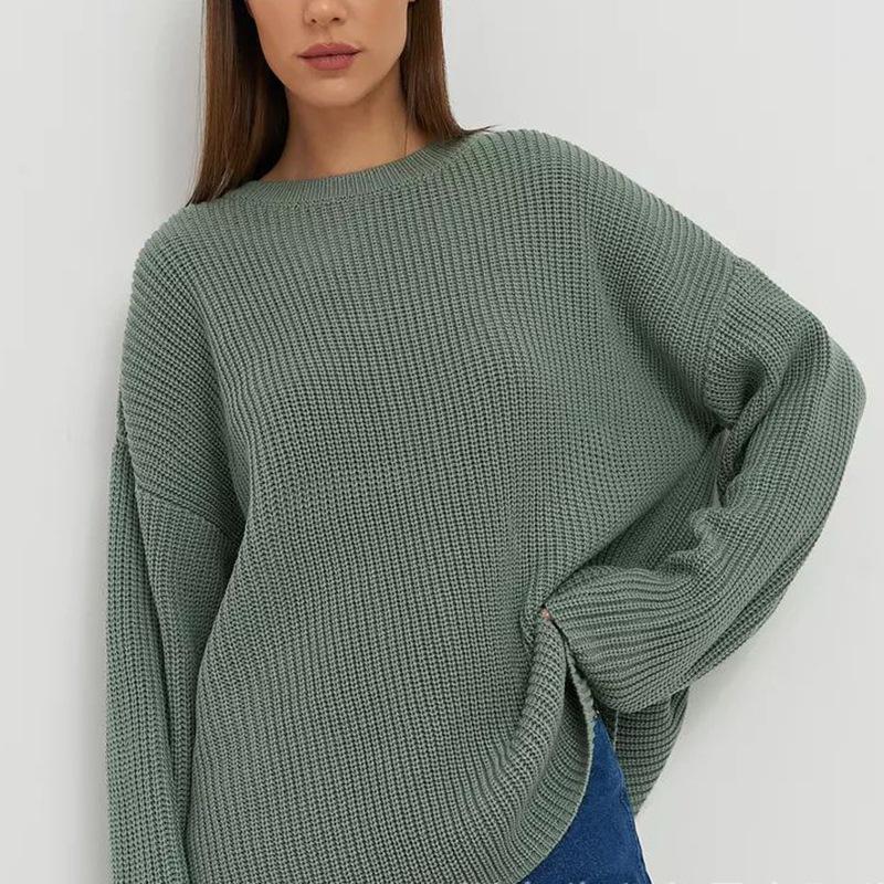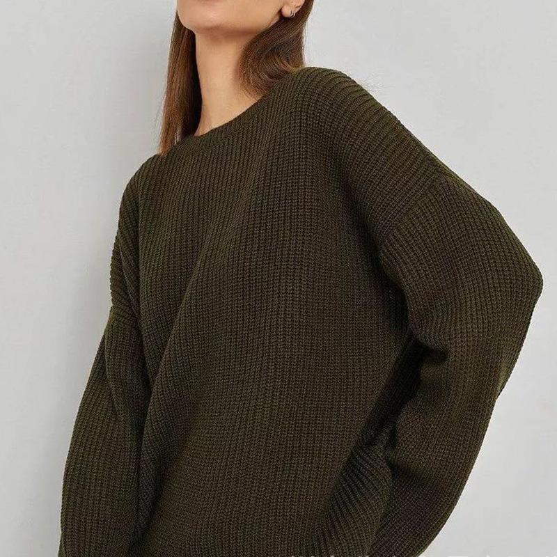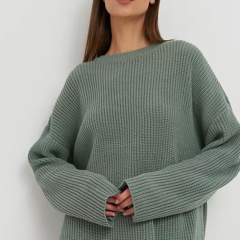 Suéter de cuello redondo de otoño e invierno 205, suéter holgado de manga larga, básico e informal, de moda, para mujer, venta al por mayor, entre Europa y Estados Unidos
