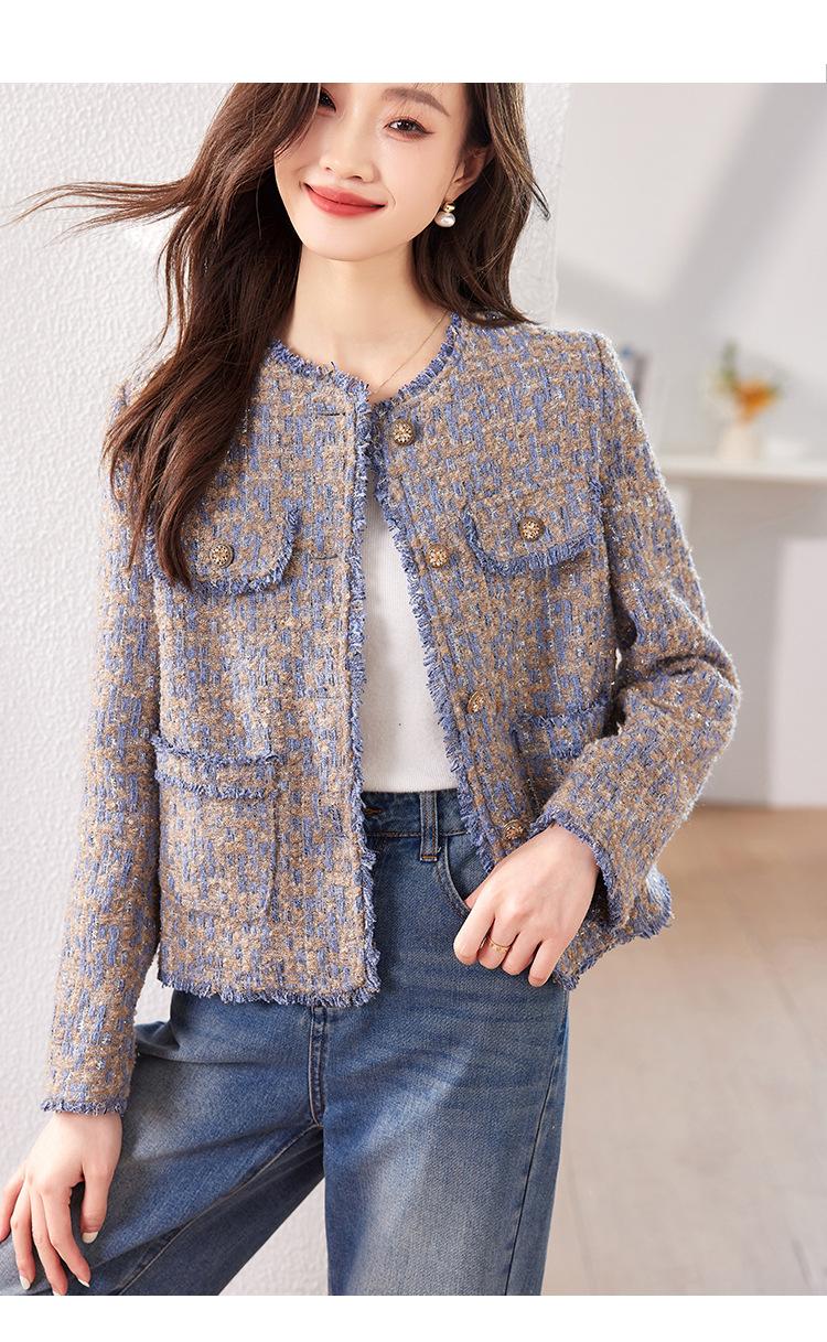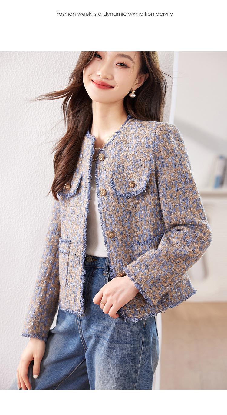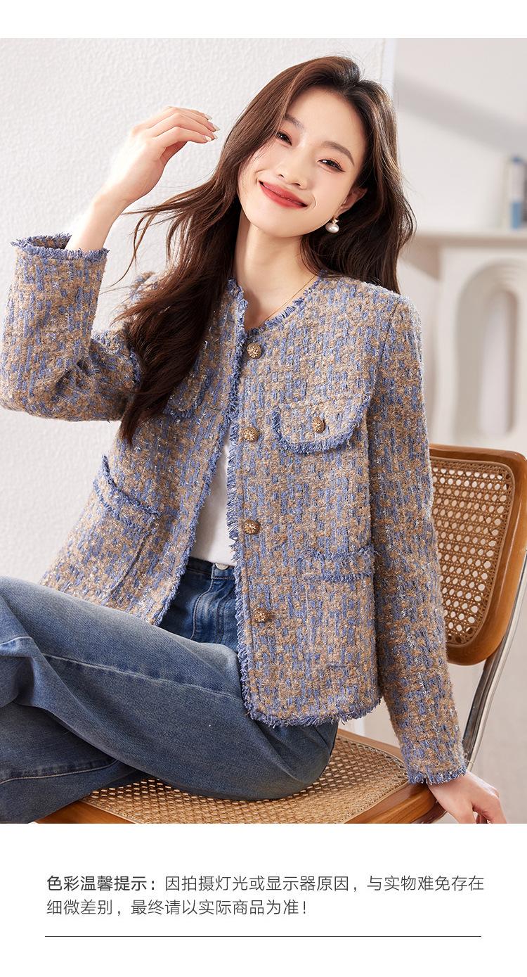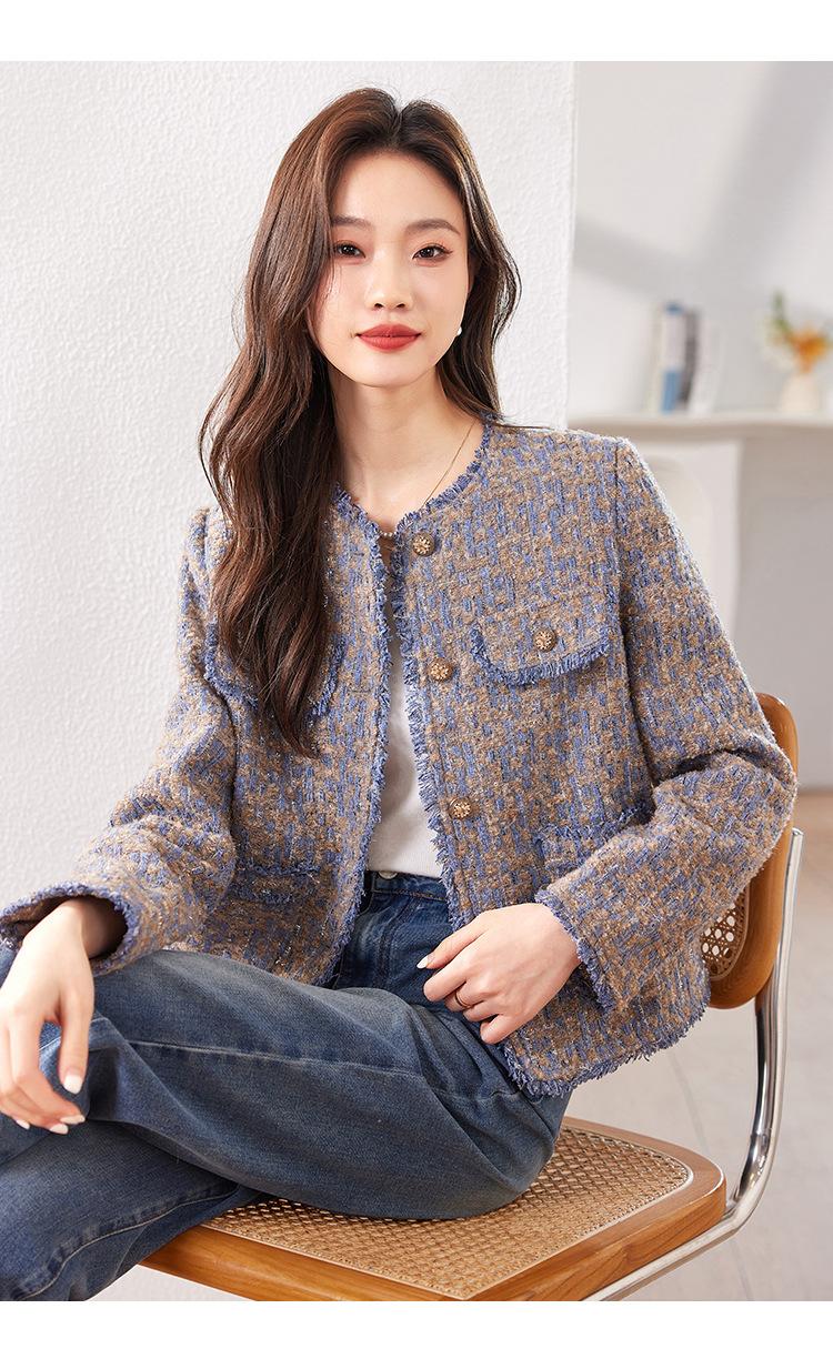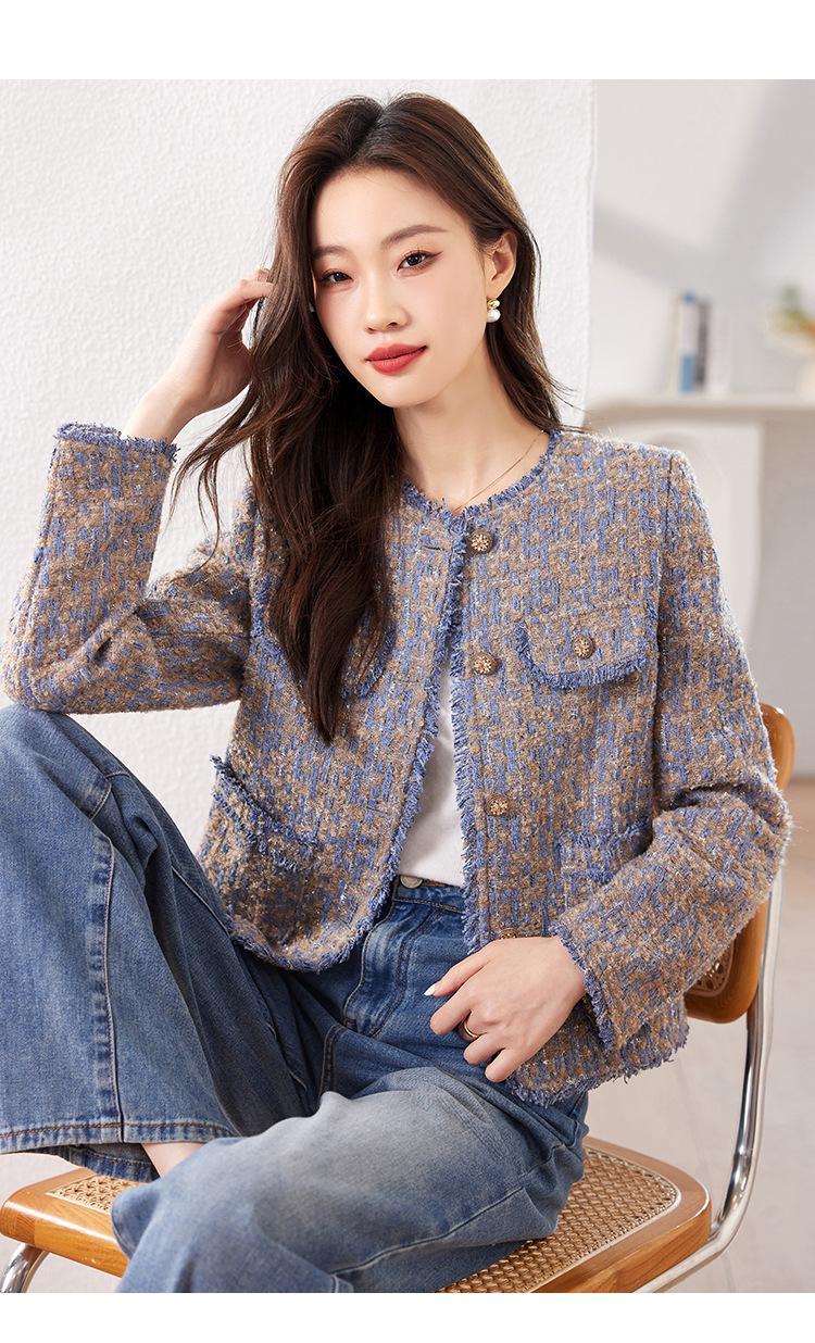 Abrigo Corto de Tweed Elegante de Lujo Ligero con Cuello Redondo para Viajar Estilo Chanel Otoño e Invierno 2025 Holgado Adelgazante para Mujer
