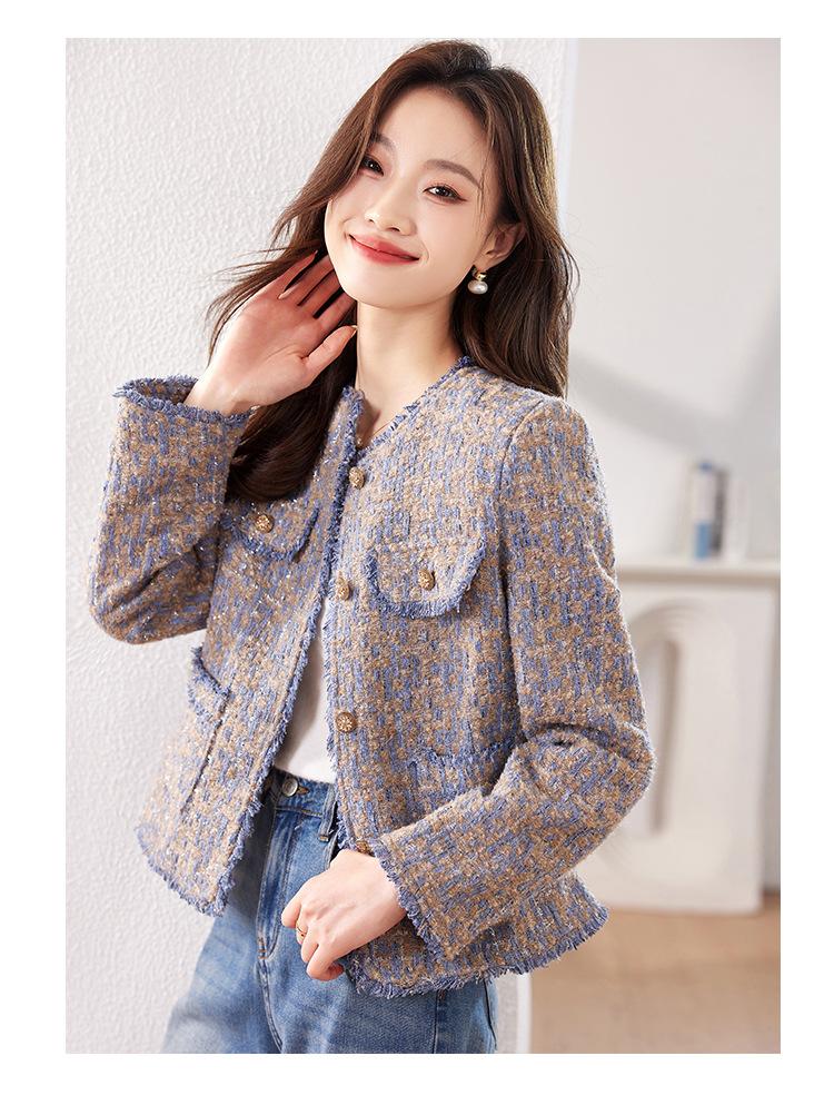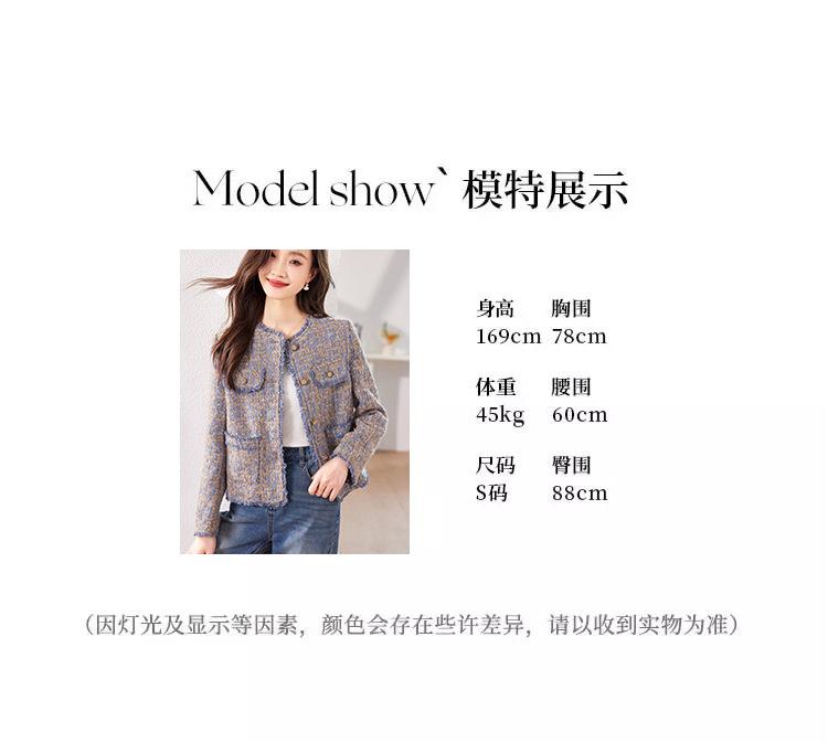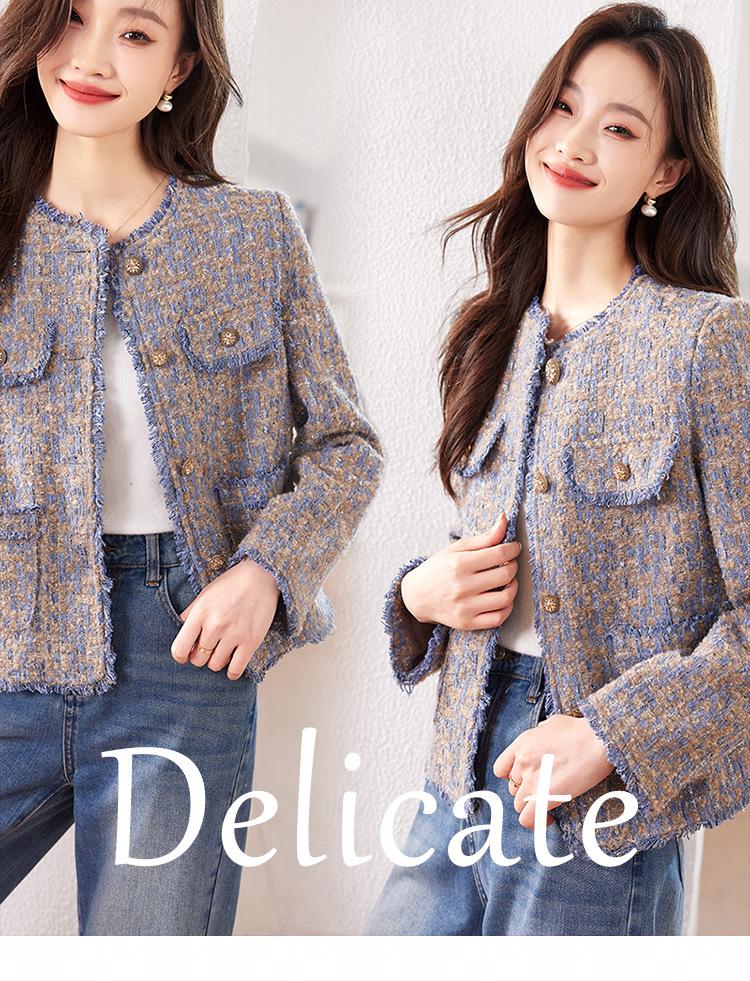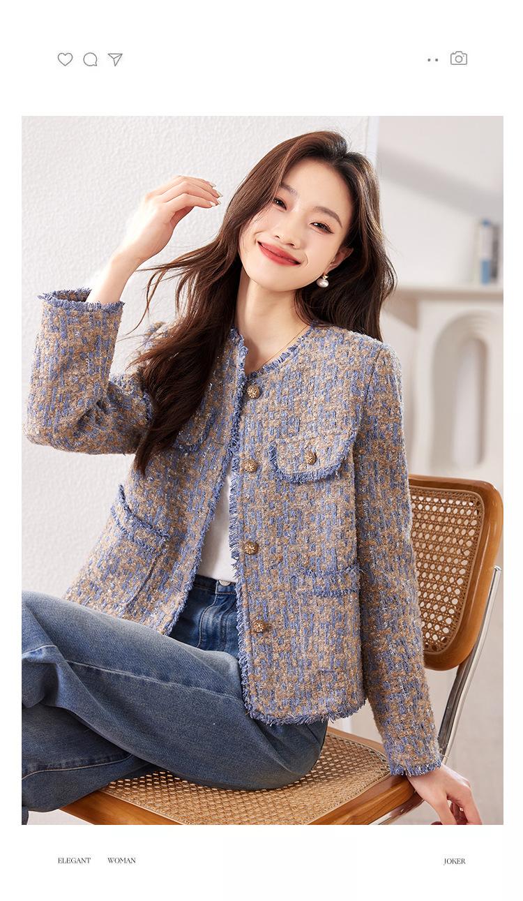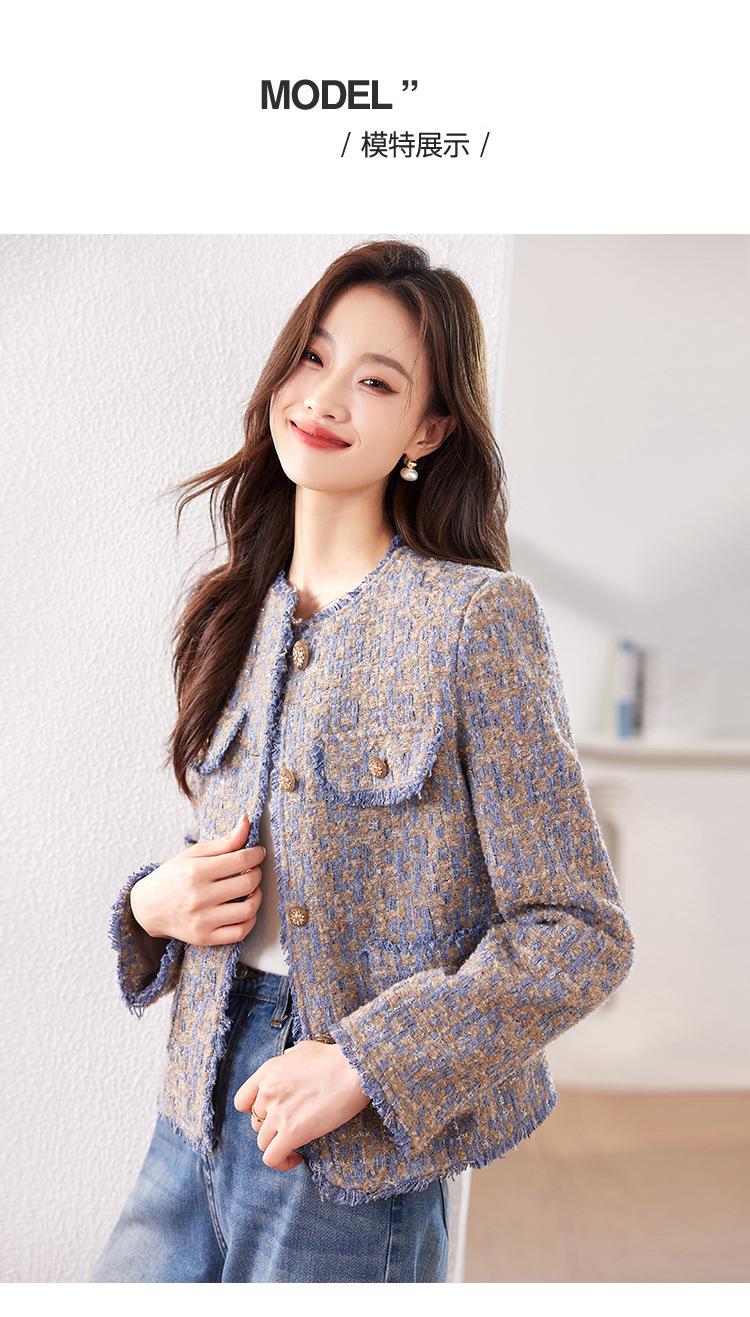 Abrigo Corto de Tweed Elegante de Lujo Ligero con Cuello Redondo para Viajar Estilo Chanel Otoño e Invierno 2025 Holgado Adelgazante para Mujer
