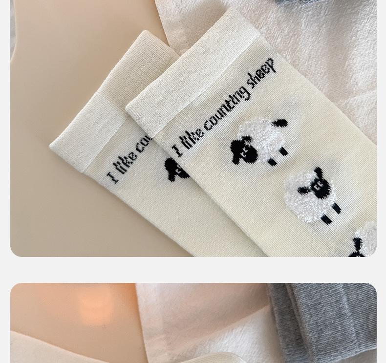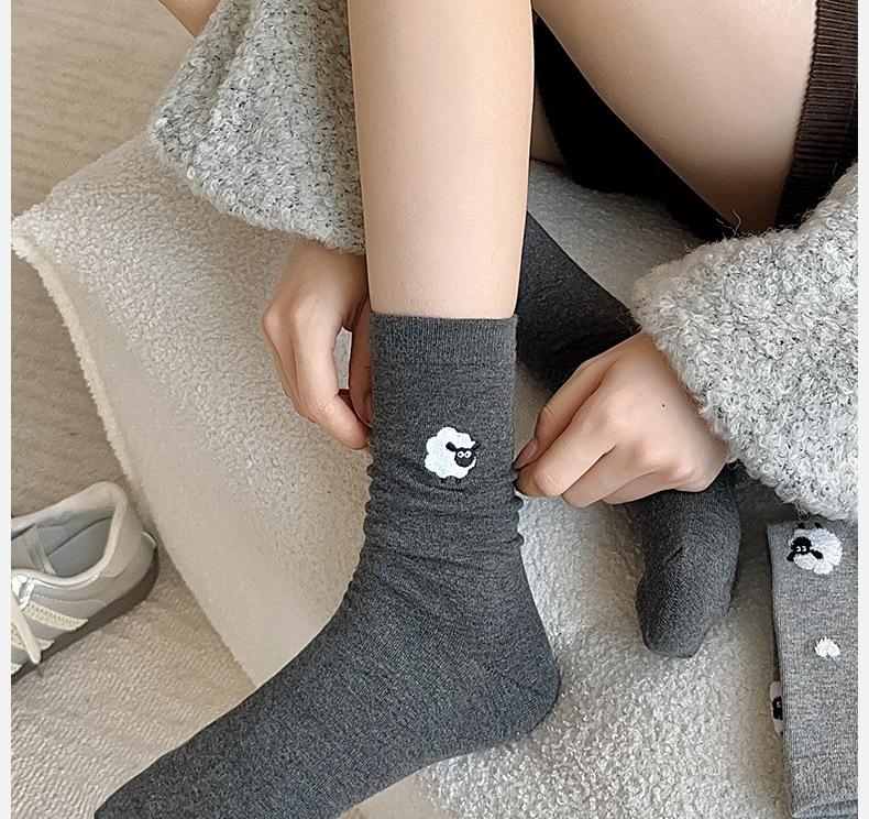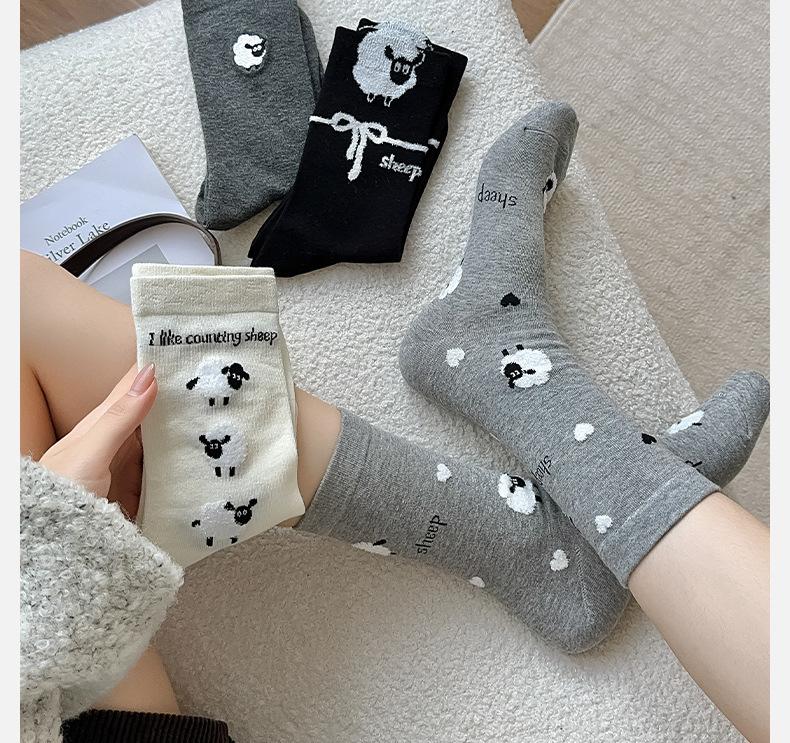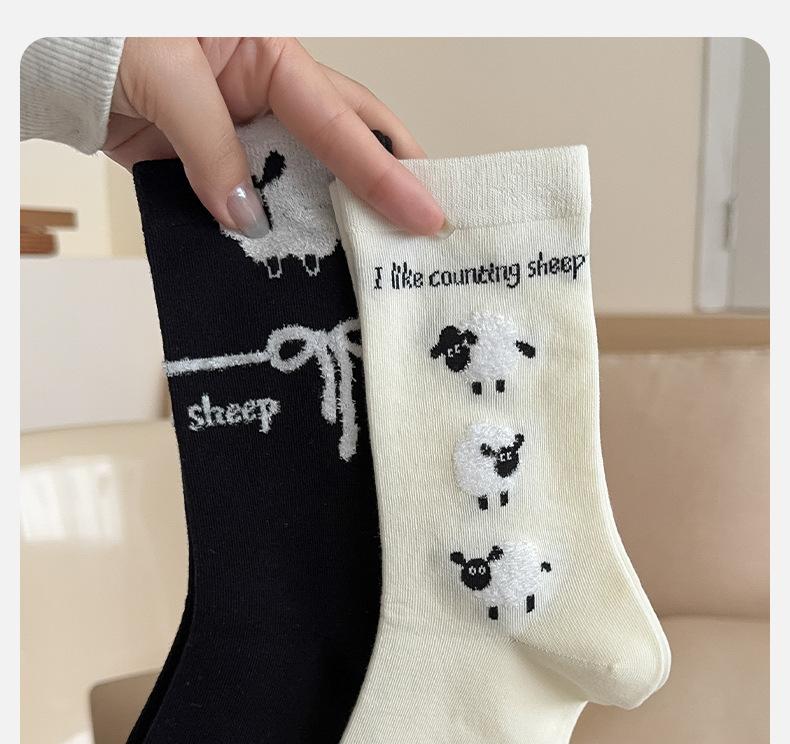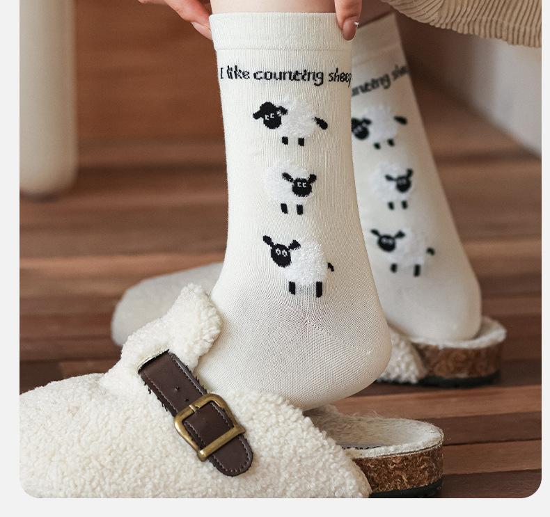 Calcetines de otoño e invierno con bonitos dibujos animados, cálidos abrazos de algodón tridimensionales, pequeñas ovejas, calcetines sencillos de algodón para mujer, venta al por mayor