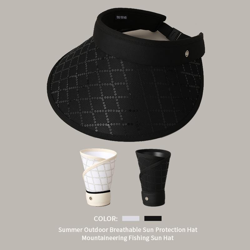 Sombrero Protector Solar Sombrilla A prueba de UV Verano Parte Superior Vacía Combinable Lentejuelas Sentido Ala Grande Sombrero de Sol de Parte Superior Vacía