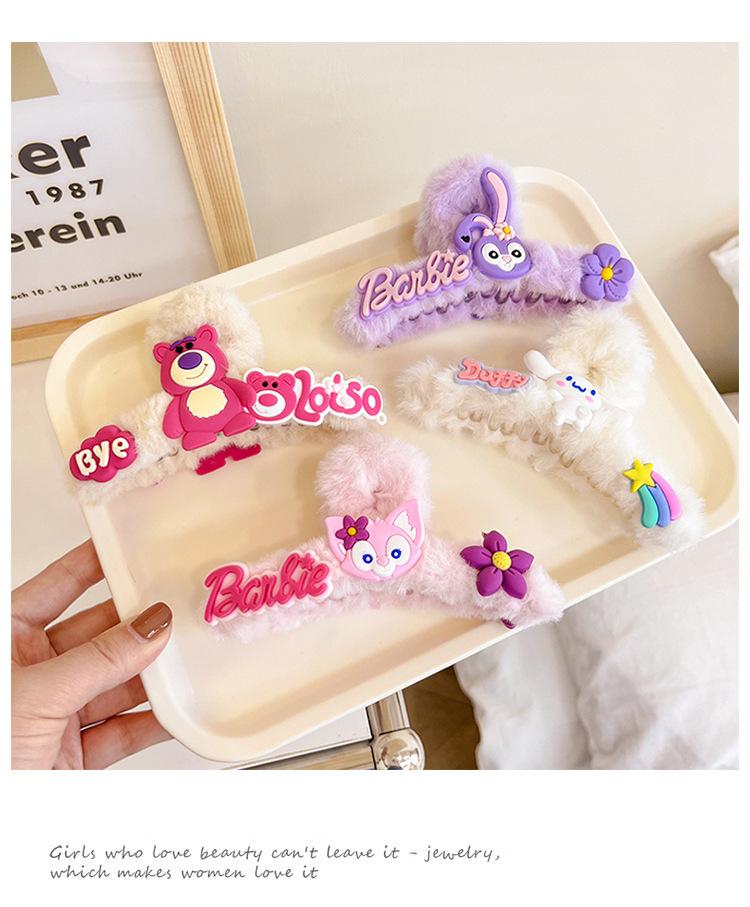 Horquilla para el pelo para niños, pinza de peluche de oso de fresa, pinza grande para la espalda de tiburón, horquilla para el pelo con diseño de estrella de dibujos animados Delu updo